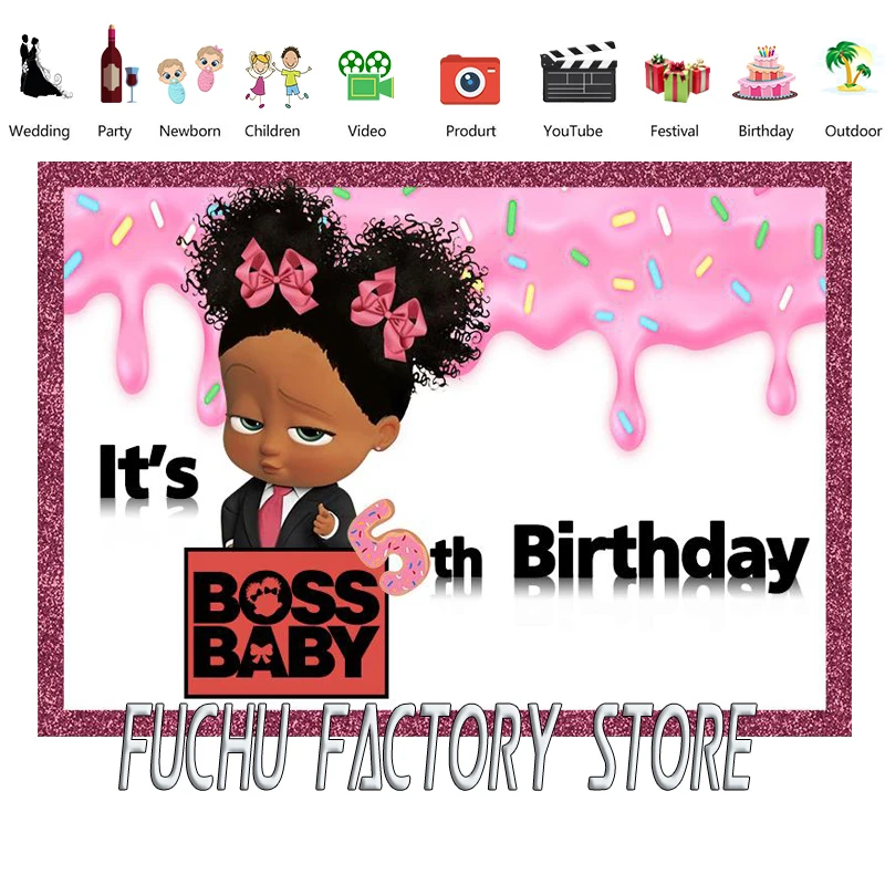 Розовый черный фон для фотосъемки маленьких девочек с изображением босса слайма конфет фон для вечеринки на день рождения фотосессия пользовательская Фотостудия