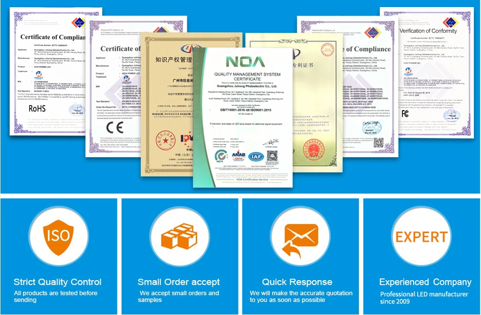 Пожалуйста, не беспокойтесь о качестве. Наша компания является основным производителем светодиодов в Китае. Наша продукция экспортируется по всему миру с 2009 года.