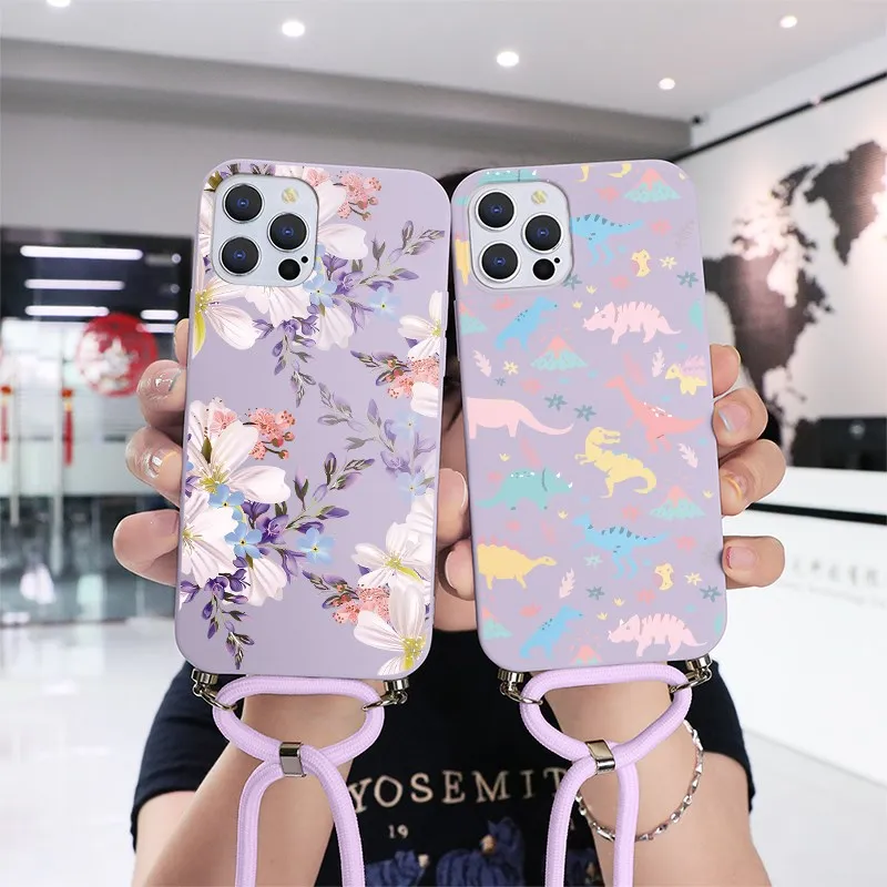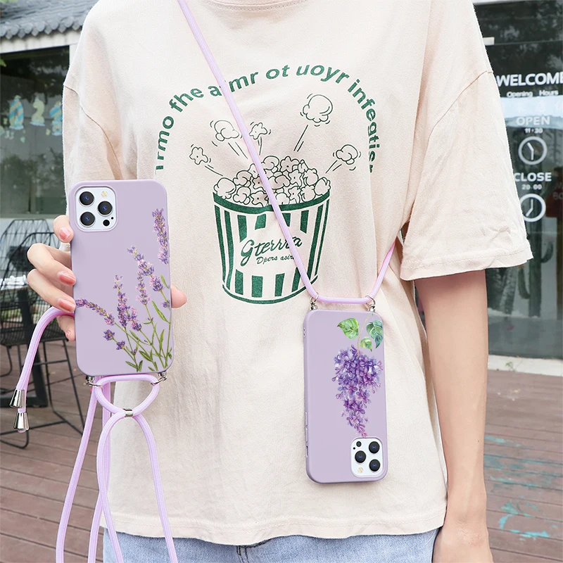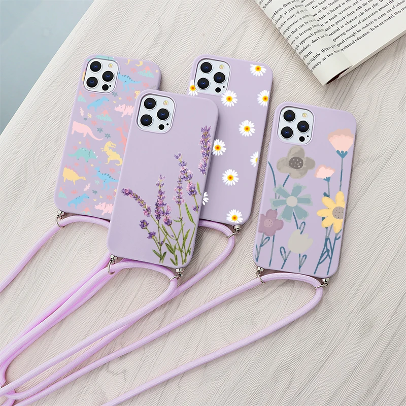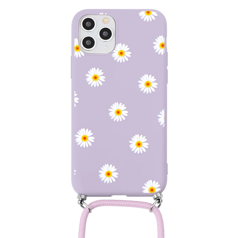 Модный милый чехол с цветочным ожерельем и шнурком для iPhone 12 11 13 Pro XS Max Mini XR X 5 5S SE 2020 7 8 6 6S Plus Couqe