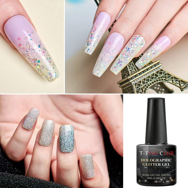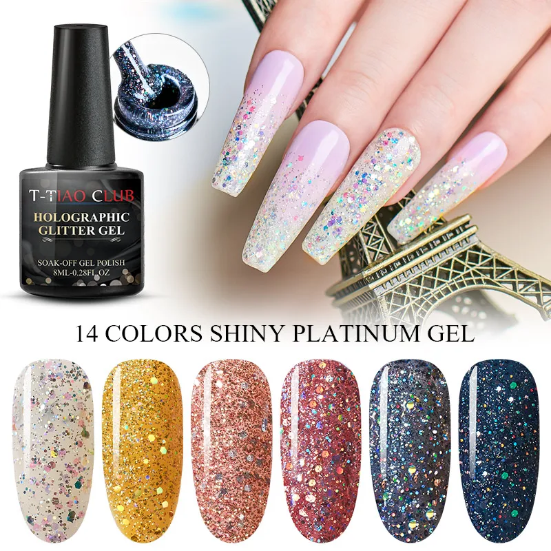 Клубный Блестящий T-TAIO мерцающий Гель-лак для ногтей, удаляемый замачиванием УФ-светодиод, Базовое покрытие, топ, дизайн ногтей, украшение для маникюра