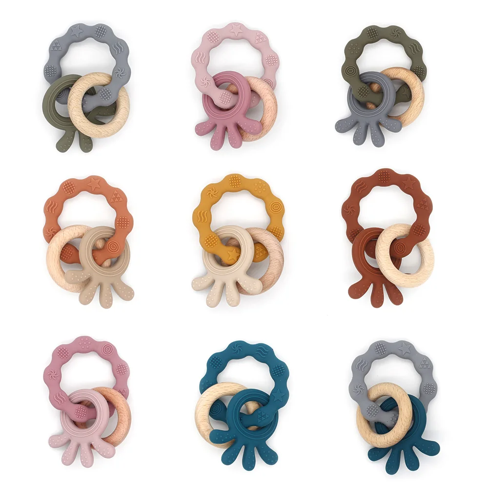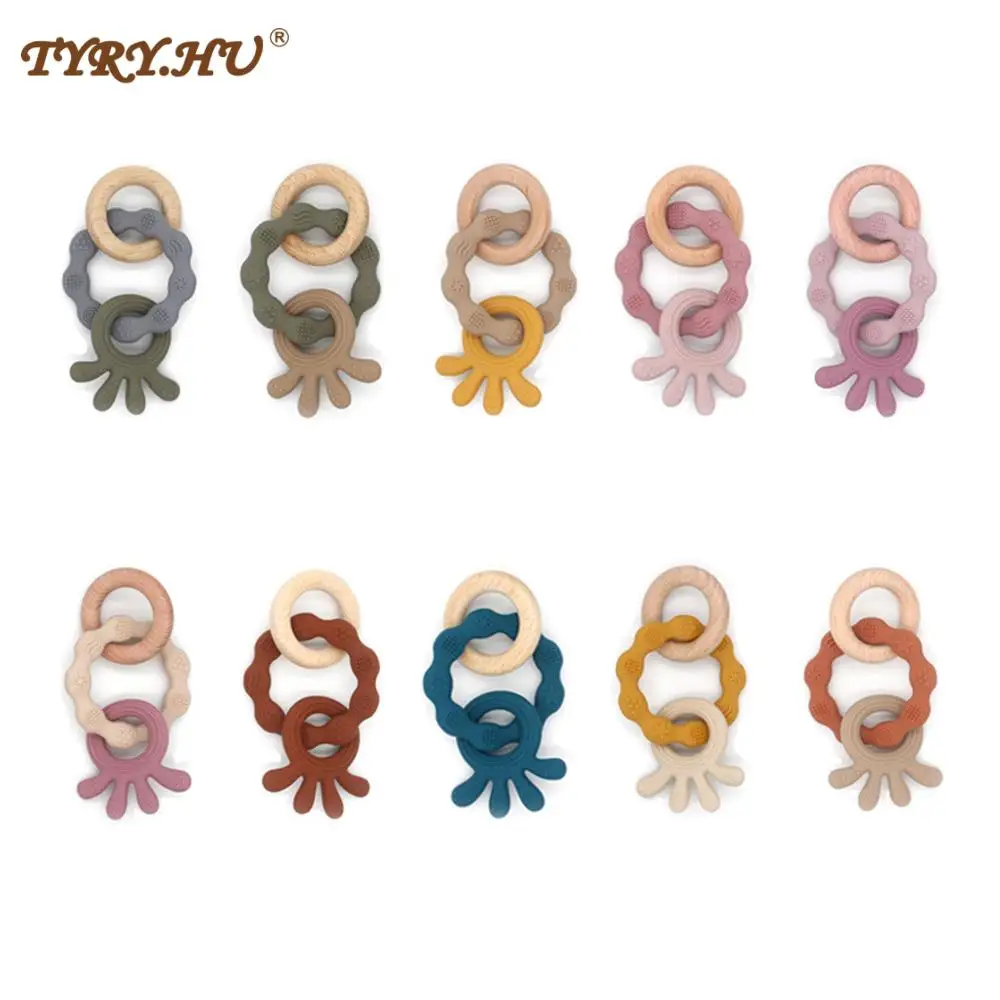 TYRY.HU 1 шт. детский Прорезыватель для зубов силиконовая детская игрушка-прорезыватель деревянные кольца Прорезыватель для зубов погремушка для новорожденных Игрушки для ухода за полостью рта для ребенка