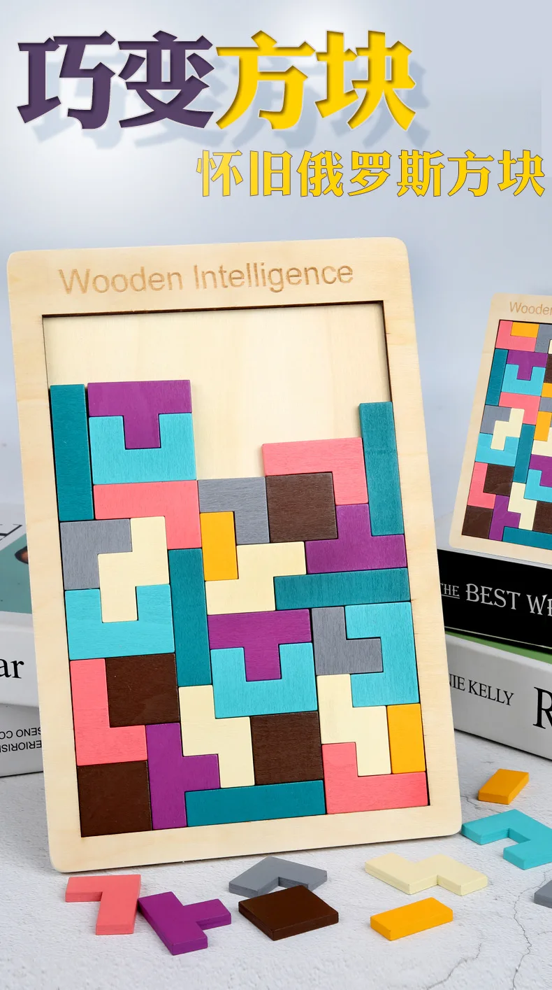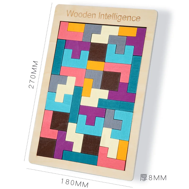 Красочная 3D головоломка, деревянная математическая игрушка танграмма, игра тетрис, детская Дошкольная Волшебная интеллектуальная обучающая игрушка для детей
