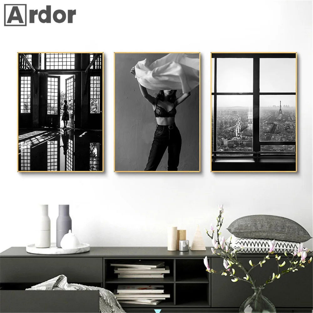 Черно-белый модный женский настенный плакат, Женский фильм, звезда,...