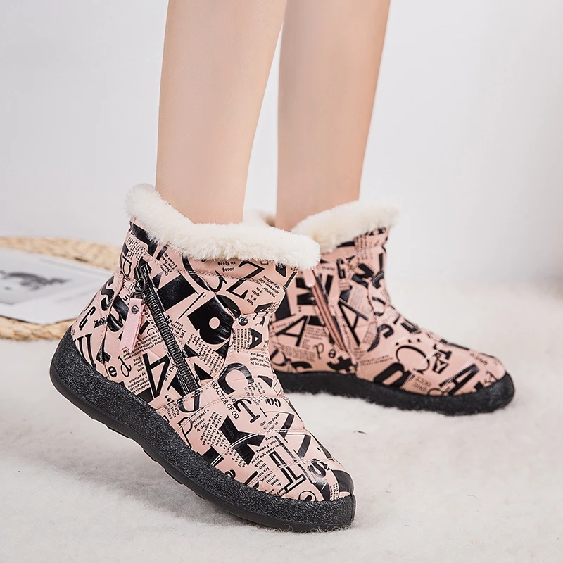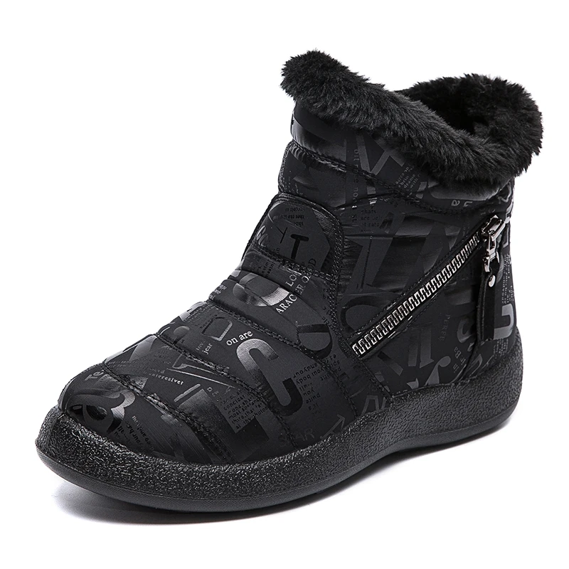 Модные женские ботинки; Теплые зимние ботинки на меху; Зимняя обувь; Женские водонепроницаемые ботильоны на молнии; Большие размеры 35-44; Повседневные удобные ботинки