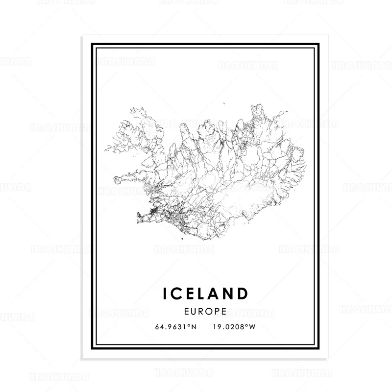 Карта городов мира холст настенное искусство исландские города плакат и принты декоративная картина для гостиной домашний декор