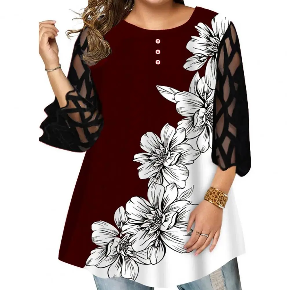 Женская блузка контрастного цвета, топ с цветочным принтом, геометрический Полупрозрачный рукав, рубашка с круглым вырезом, уличная одежда Описание:Дизайн контрастных цветов очень модный и привлекательный. А геометрические полупрозрачные рукава красивые и популярные, с чувством дизайна.Уникальный цветочный дизайн очень красивый и художественный. И это позволит вам быть более очаровательной и привлекательной.Свободная рубашка из высококачественного полиэстера, мягкая и удобная в носке.Есть пять размеров на выбор: L, XL, 2XL, 3XL, 4XL.Эта блузка подходит для отдыха, прогулок, возвращения в школу, семьи, свиданий, вечерние, работы, покупок, повседневной носки. Название товара: блузкаМатериал: полиэстерСтиль: ПовседневныйПол: женщинТип Посадки: свободныйТип размера: размера плюс размерТип воротника: круглый вырезДлина рукава: рукав до локтяСезон: весна, осеньОсобенности: цветочный принт, дышащий, мягкийРазмеры:[Наш Размер L] Бюст: 106 см/41,7 дюйма, рукав: 41 см/16,1 дюйма, длина: 68 см/26,8 дюйма (прибл.)[Наш Размер XL] Бюст: 112 см/44,1 дюйма, рукав: 42 см/16,5 дюйма, длина: 69 см/27,2 дюйма (прибл.)[Наш Размер 2XL] Бюст: 118 см/46,5 дюйма, рукав: 43 см/16,9 дюйма, длина: 70 см/27,6 дюйма (прибл.)[Наш Размер 3XL] Бюст: 124 см/48,8 дюйма, рукав: 44 см/17,3 дюйма, длина: 71 см/28 дюймов (прибл.)[Наш Размер 4XL] Бюст: 130 см/51,2 дюйма, рукав: 45 см/17,7 дюйма, длина: 72 см/28,3 дюйма (прибл.) Примечания:Пожалуйста, обратитесь к нашей таблице размеров и выберите правильный размер.Из-за разницы в освещении и настройках экрана цвет изделия может немного отличаться от изображения. Посылка входит:1 х блузка (другие не включены)