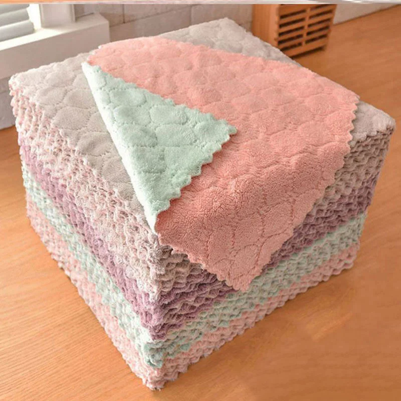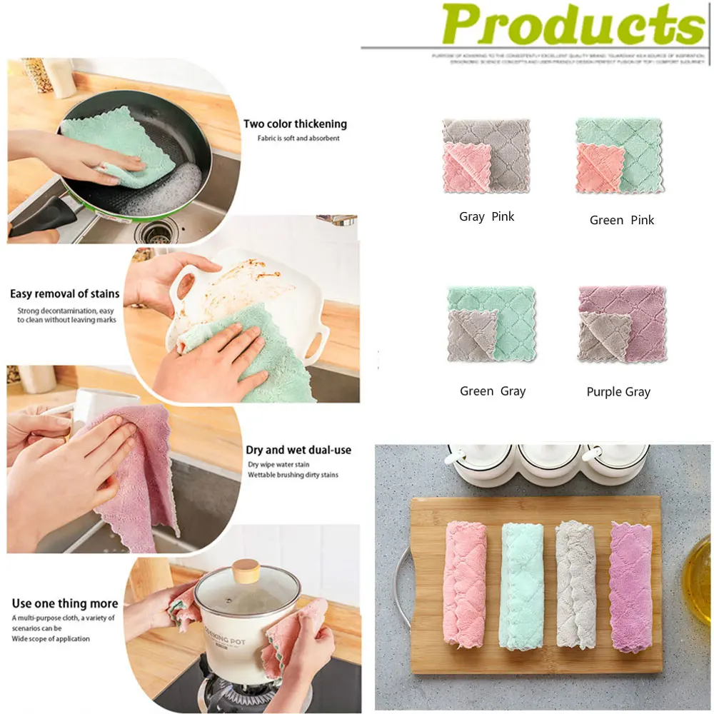 Особенности: Материал: коралловый флис Цвет: розовый, зеленый, синий Размер: 26*15 см Особенности: 1. Двухсторонние, супер мягкие и удобные, антибактериальные, прочные, экологически чистые, впитывающие. 2. Без масла, легко моется, помогает нам чистить блюда, печи, раковины и т. Д. 3. Лучше удалить кухонные пятна и защитить здоровье семьи.