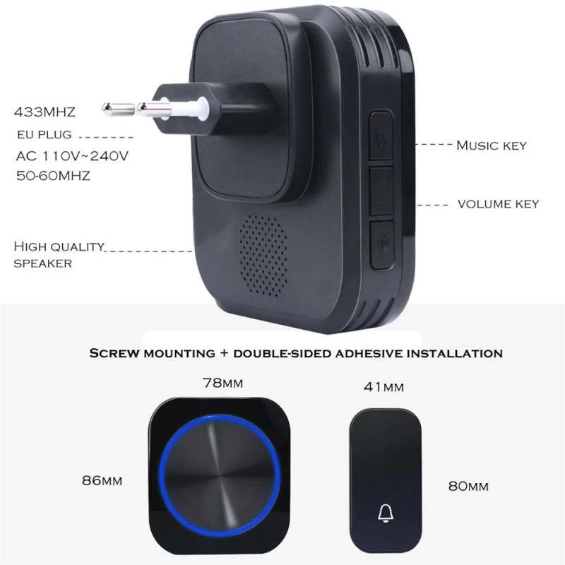 Дверной звонок умный дом, водонепроницаемый, без батареи, 1-2 кнопки