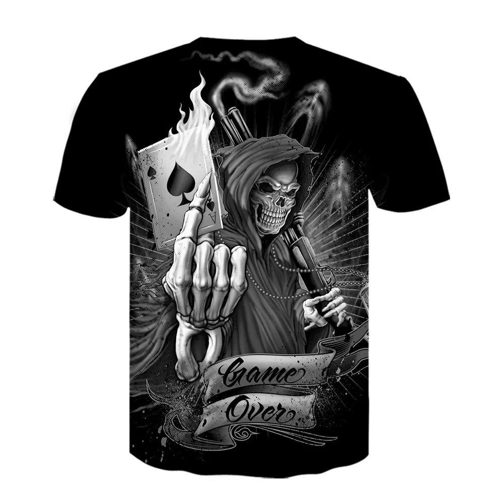 Футболка мужская с 3D-принтом черепа, крутая тенниска в стиле панк, летняя майка с принтом черепа, покера, уличная одежда