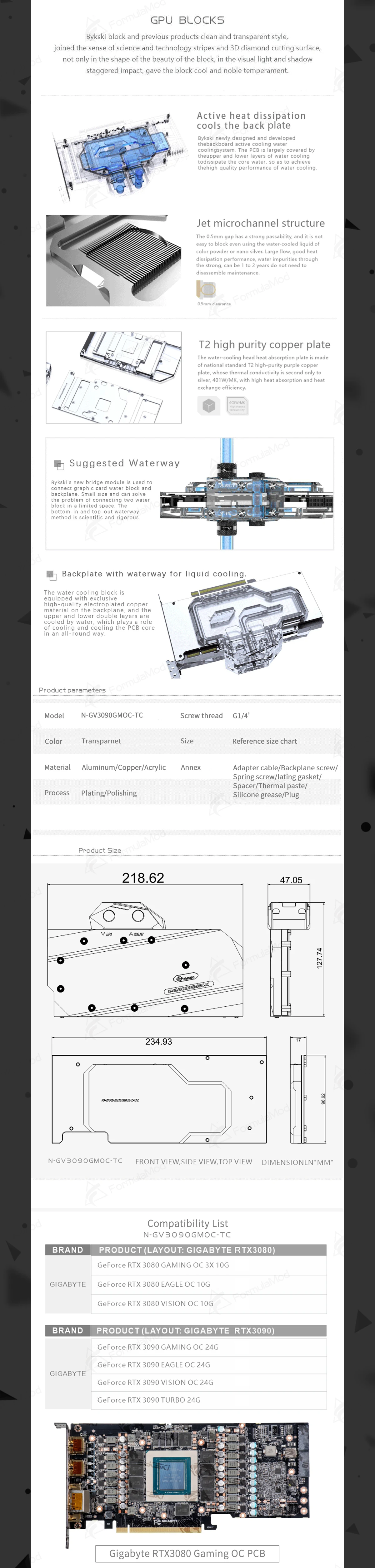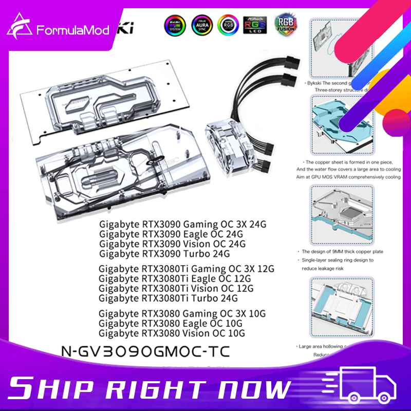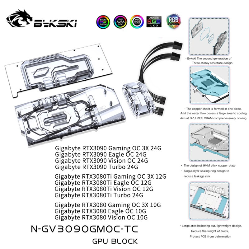 Блок графического процессора Bykski с активным водным ходом для Gigabyte RTX 3090 3080 GamingEagleTurboVision N-GV3090GMOC-TC
