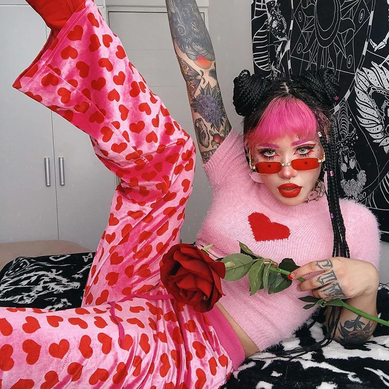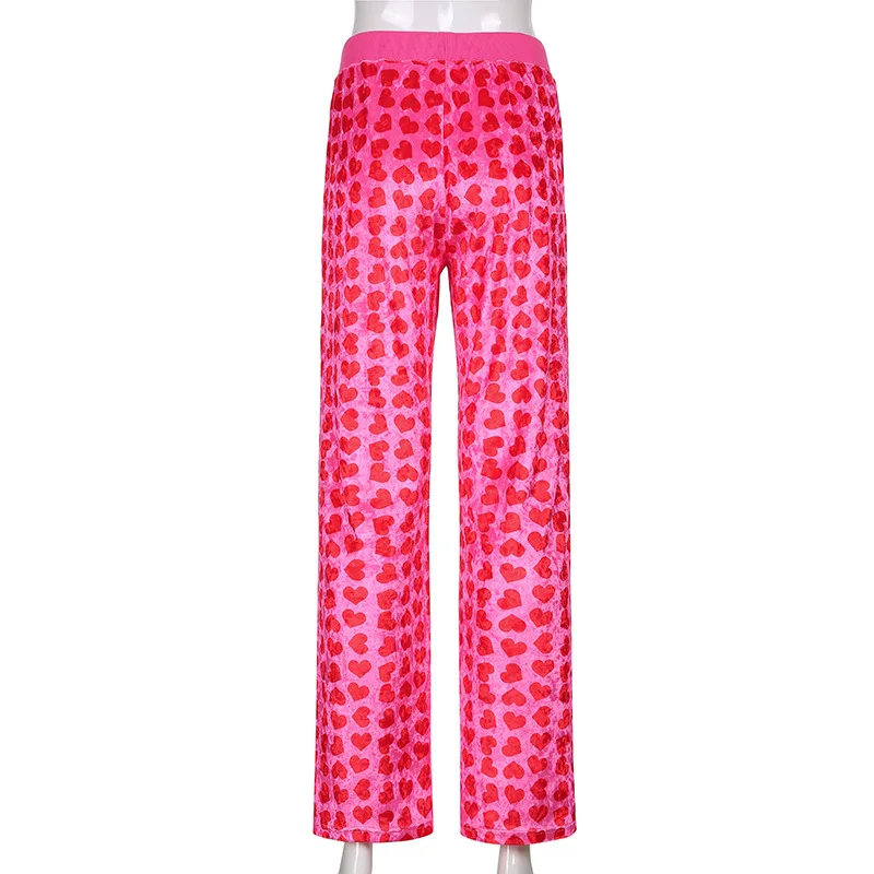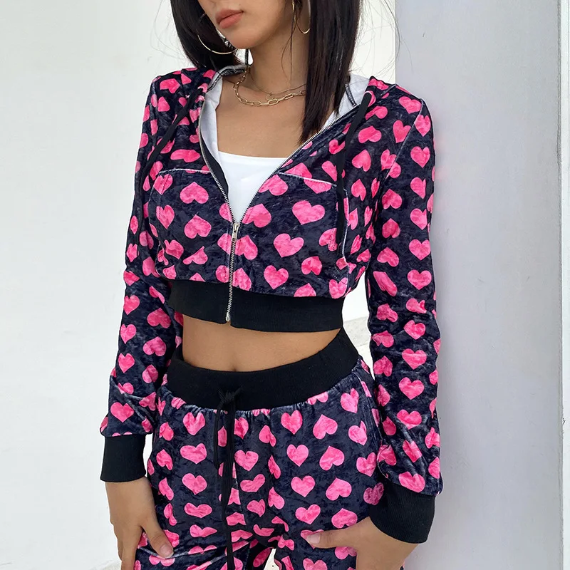 Женский спортивный костюм с принтом сердца, розовые штаны Y2k и укороченные толстовки, костюм из 2 предметов, Женский костюм на осень, брюки