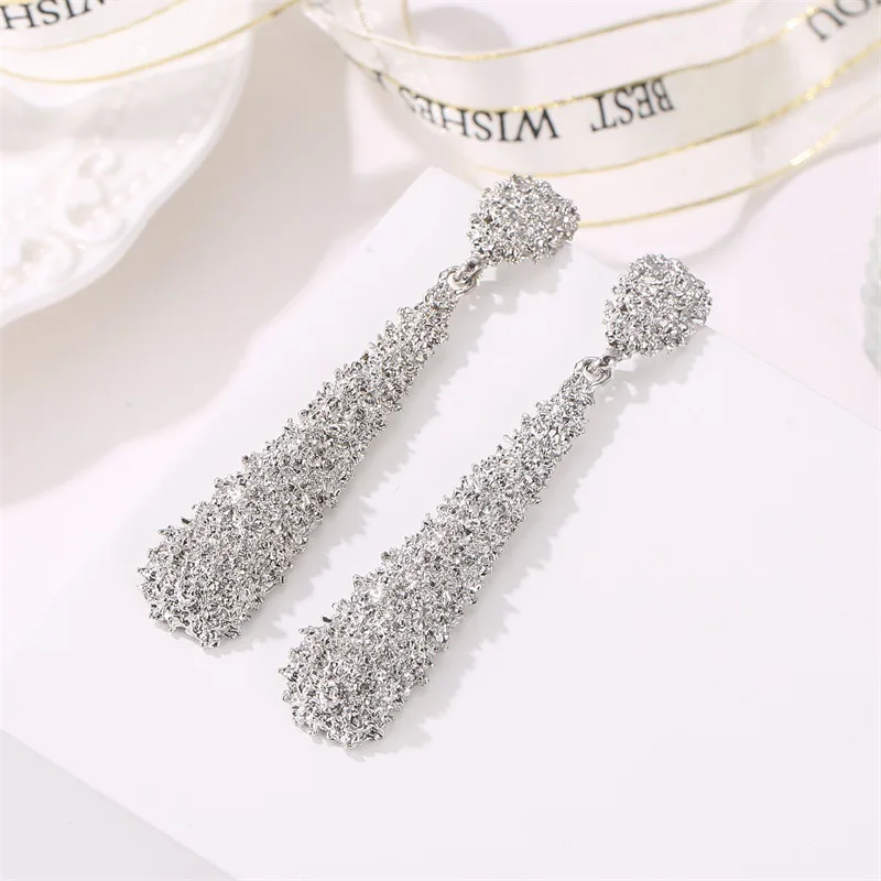 Новые модные крупные металлические матовые длинные серьги в форме капли рельефные длинные серьги для женщин романтический подарок на свадьбу или годовщину
