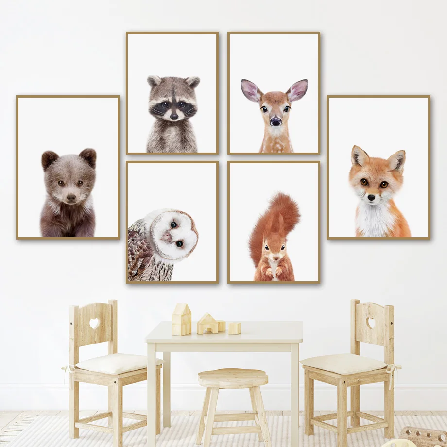 Настенные картины, декор детской комнаты, Мультяшные 3D Животные, с...