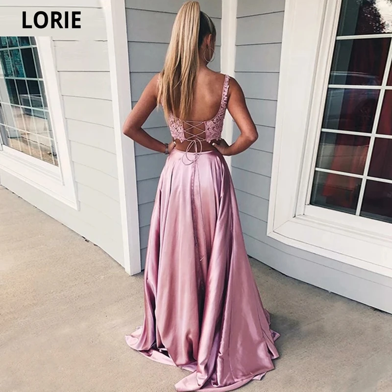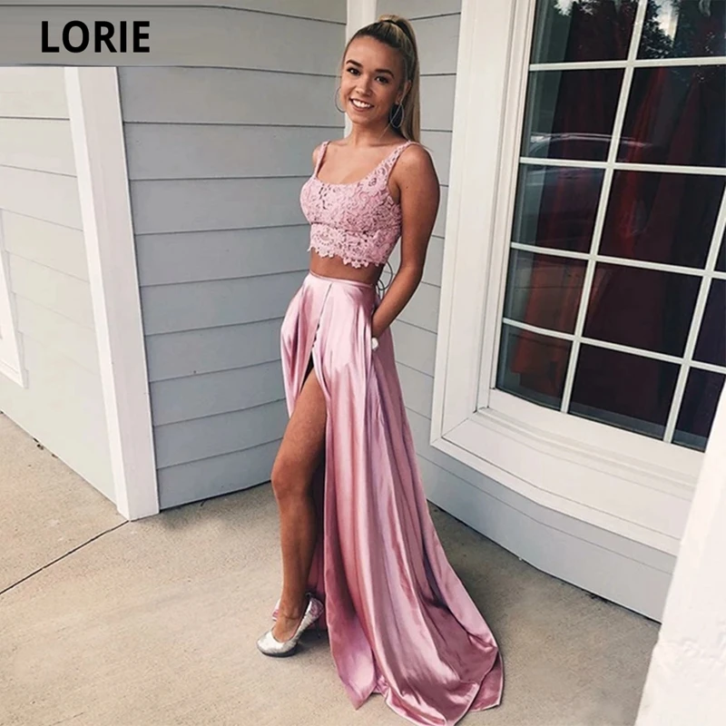Женское вечернее платье, элегантный комплект из двух предметов, ТРАПЕЦИЕВИДНОЕ ПЛАТЬЕ с круглым вырезом спереди, Кружевная аппликация со шлейфом, платье с разрезом для выпускного вечера