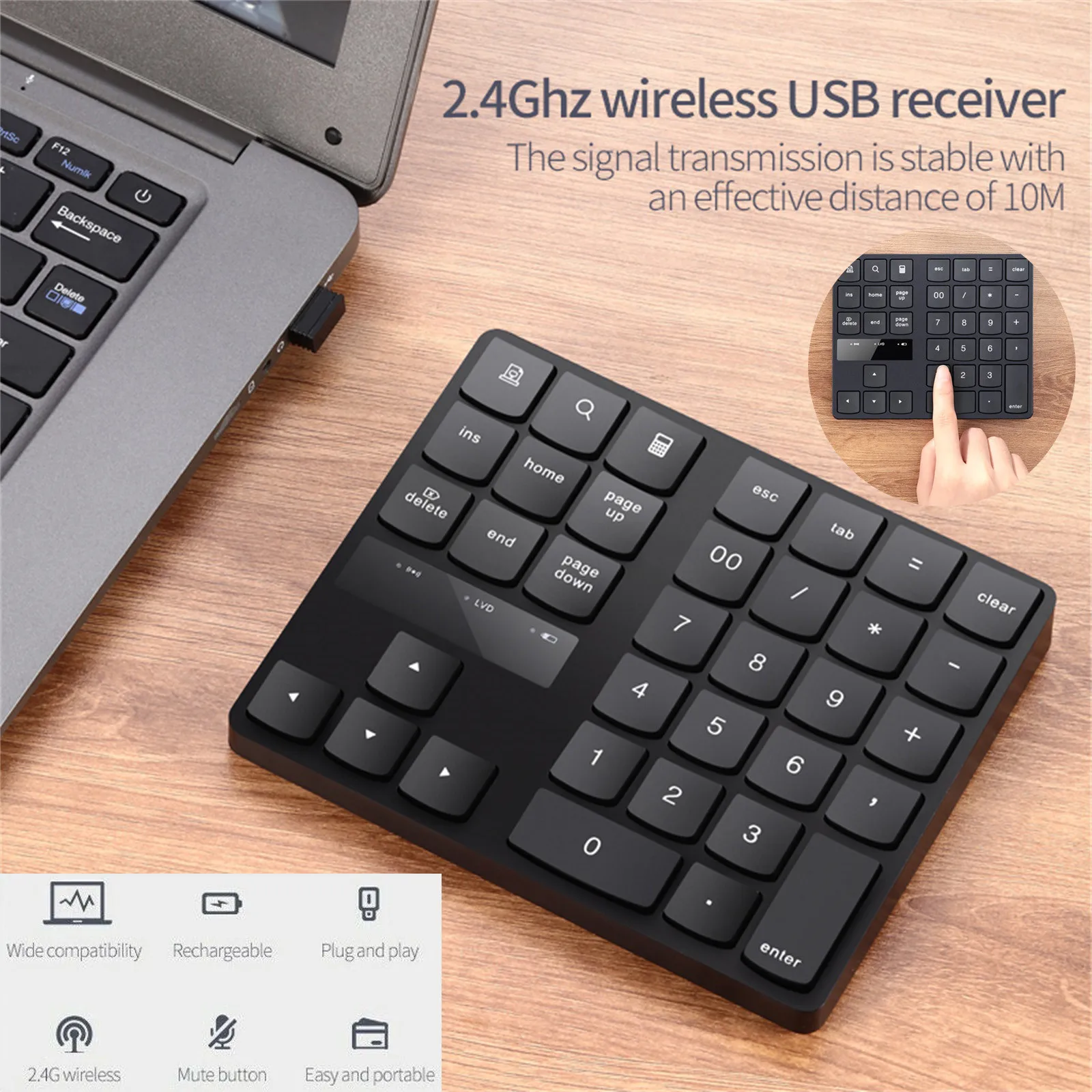 Новая беспроводная цифровая клавиатура, портативная клавиатура, 35 клавиш, ПК, перезаряжаемая цифровая игровая клавиатура для планшета, рабочего стола, механическая