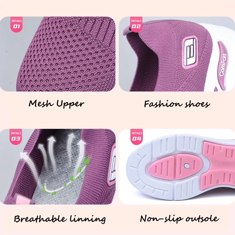Женские Дышащие сетчатые кроссовки, на плоской подошве, без шнуровк...