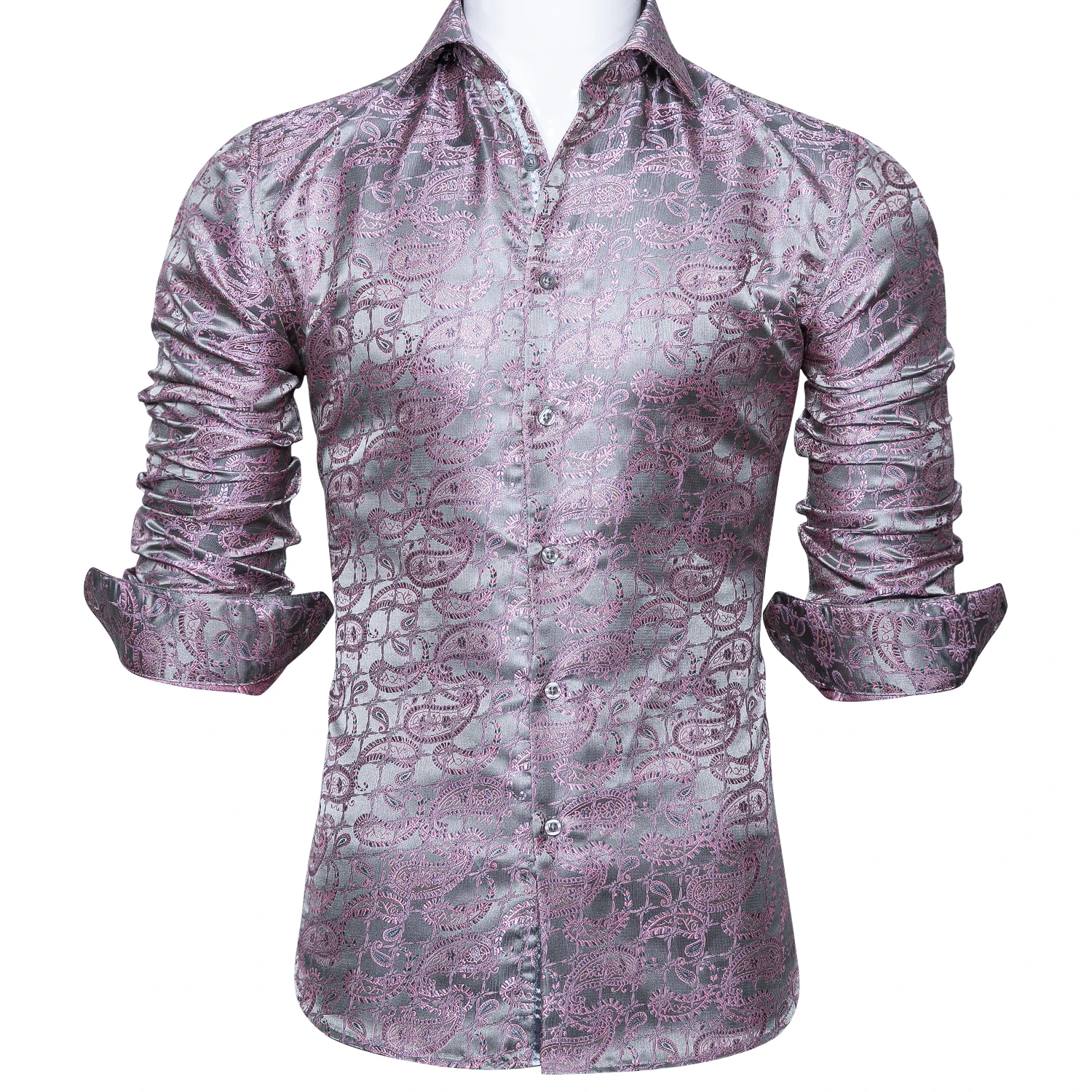 Barry.Wang роскошные розовые шелковые рубашки с пейсли, мужские повседневные рубашки с длинным рукавом и цветочным принтом для мужчин, дизайнерская приталенная рубашка, BCY-0024