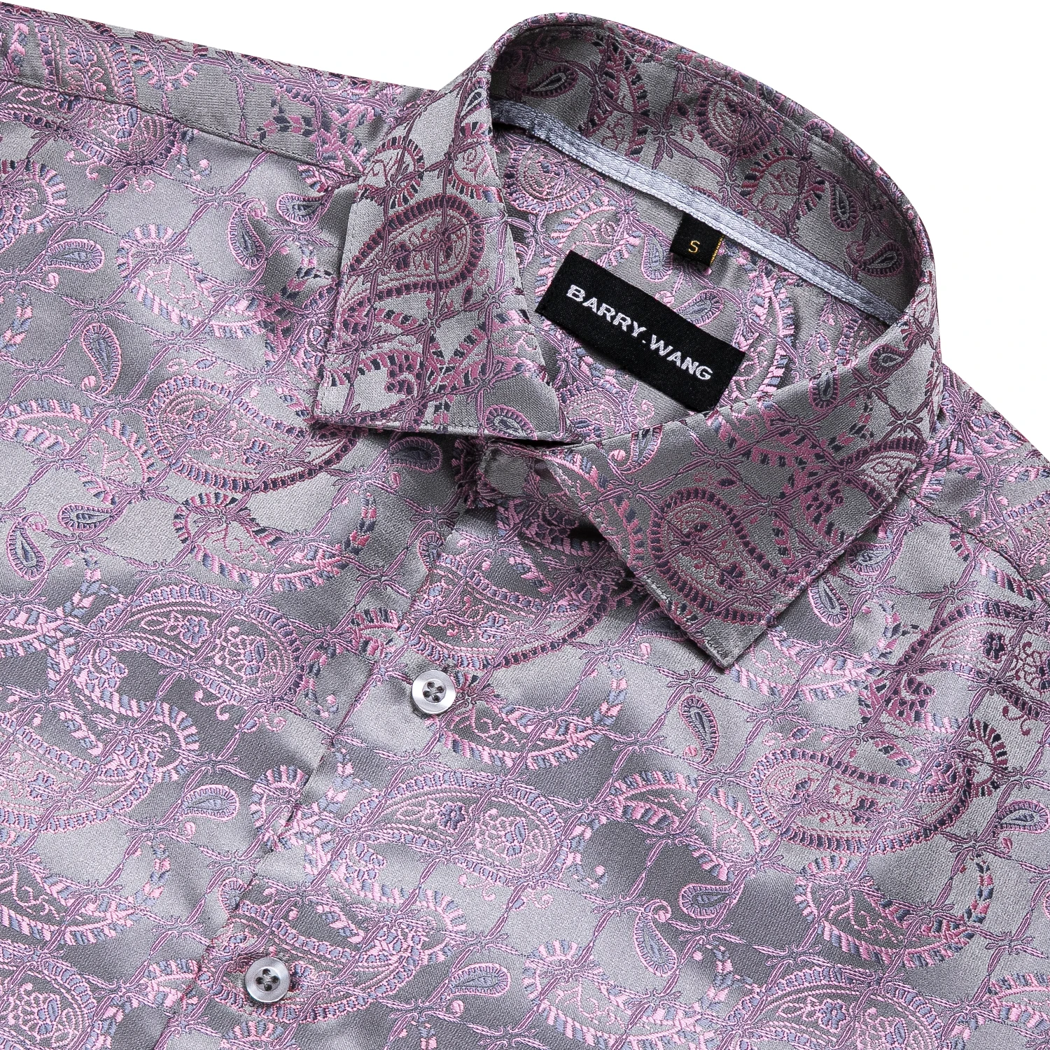 Роскошные розовые шелковые рубашки Barry.Wang с узором пейсли, мужские повседневные рубашки с длинным рукавом и цветочным принтом для мужчин, дизайнерская приталенная рубашка, BCY-0024