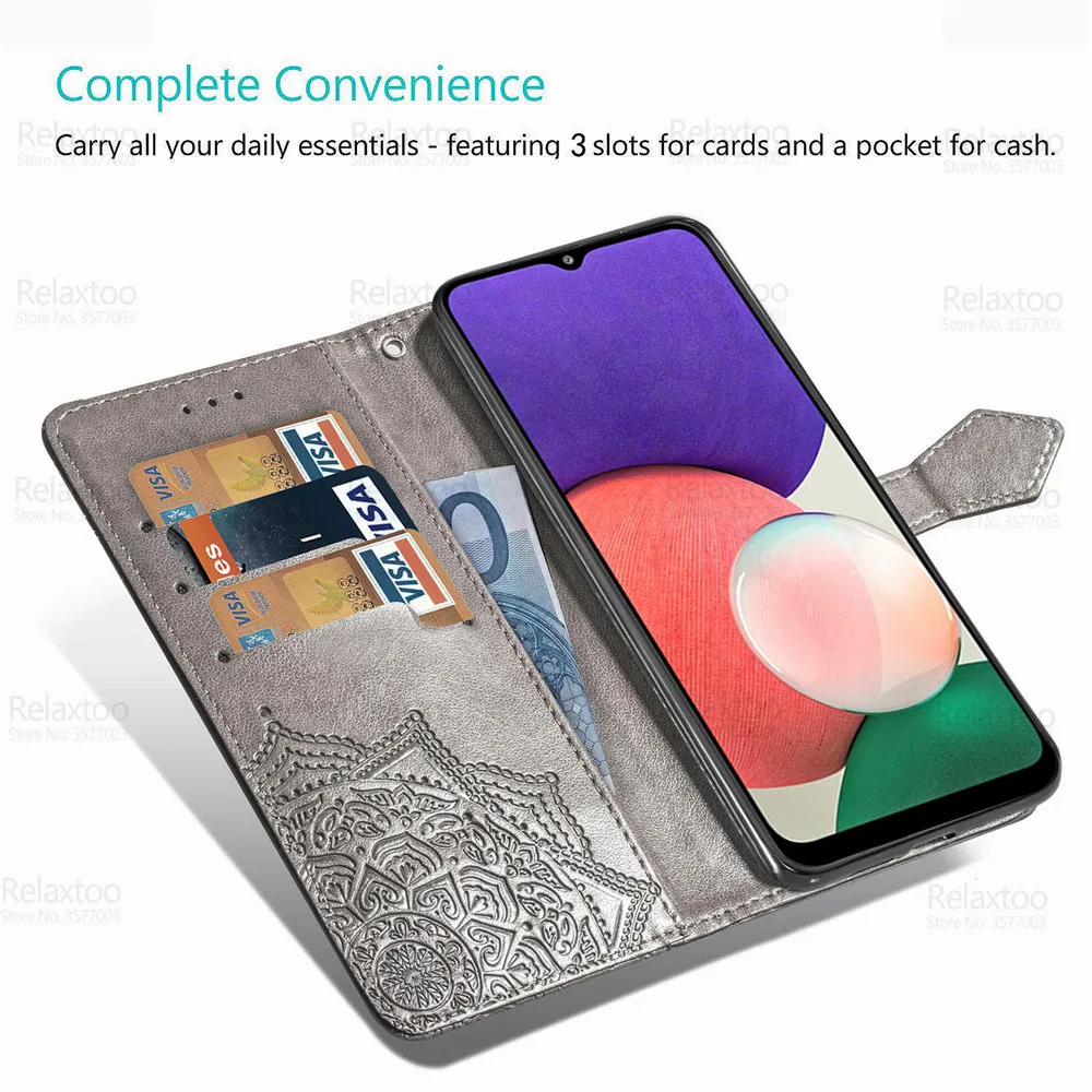 Кожаный чехол-книжка в стиле ретро с магнитной застежкой для Samsung Galaxy A22 A 22 2021 4G 5G A225F A226B 3D с тиснением, чехол-кошелек с подставкой для телефона, Fundas