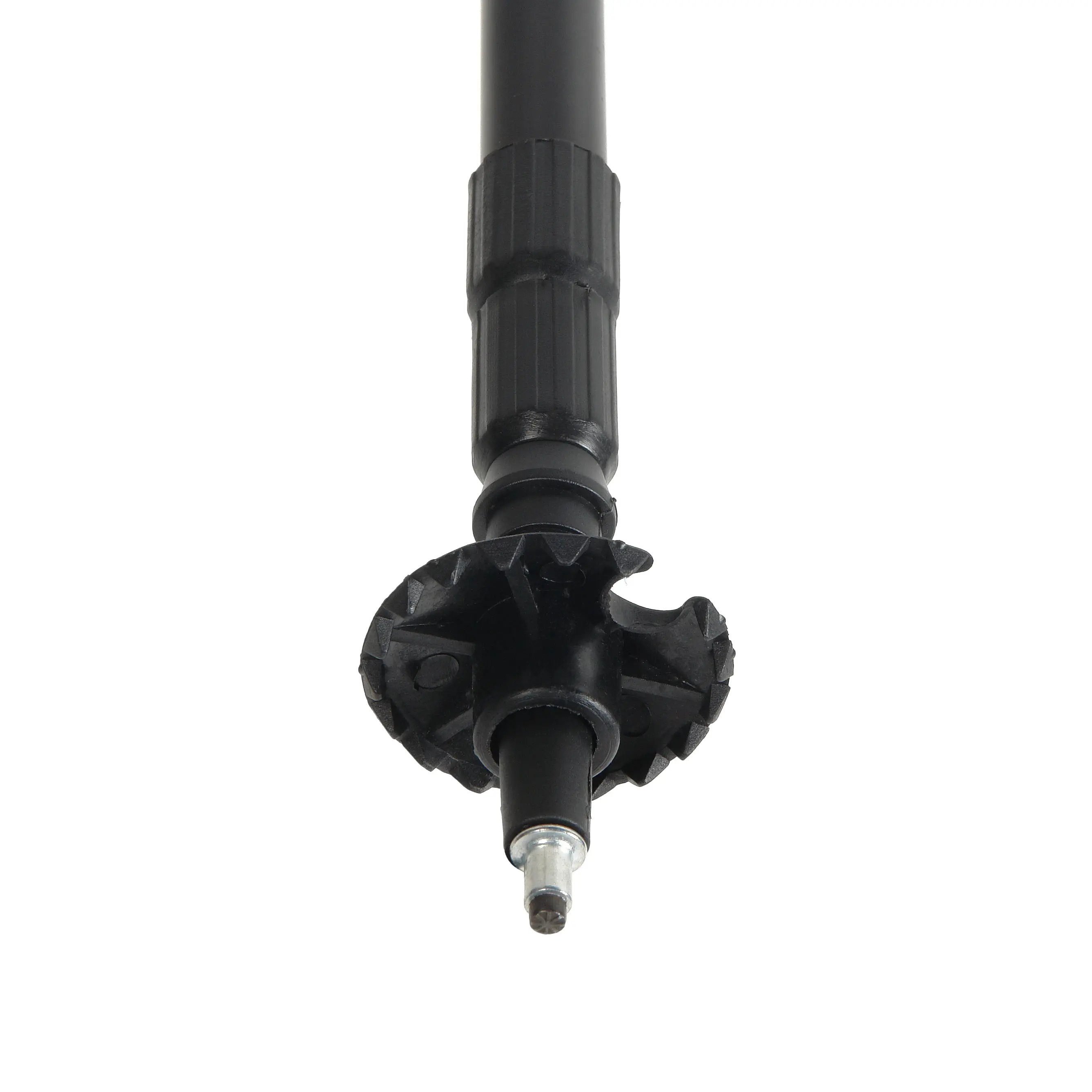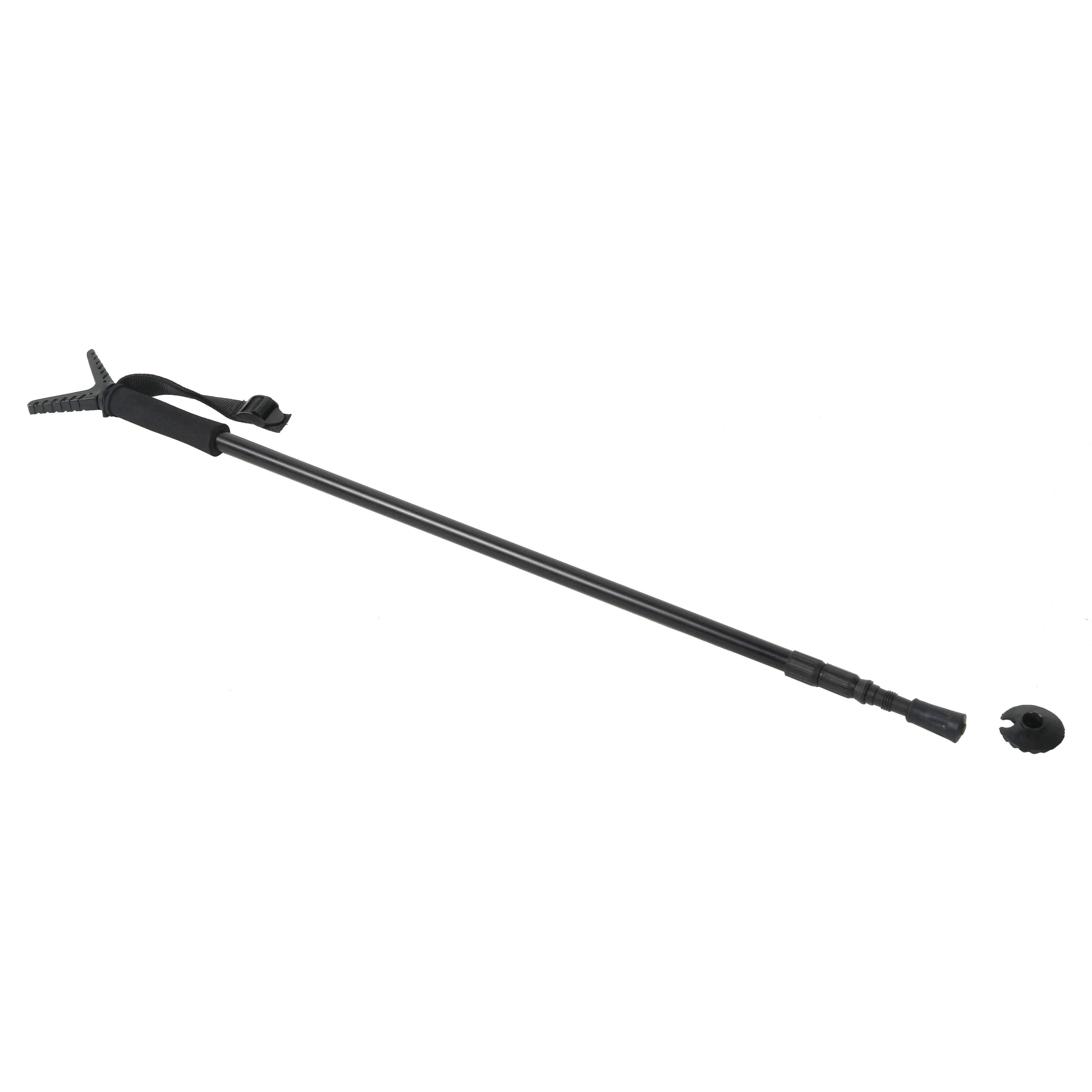 На конце опоры расположен твердосплавный наконечник со съемной резиновой ножкой. В комплект также входит диск, который накручивается на опору, и не дает моноподу проваливаться в снег.