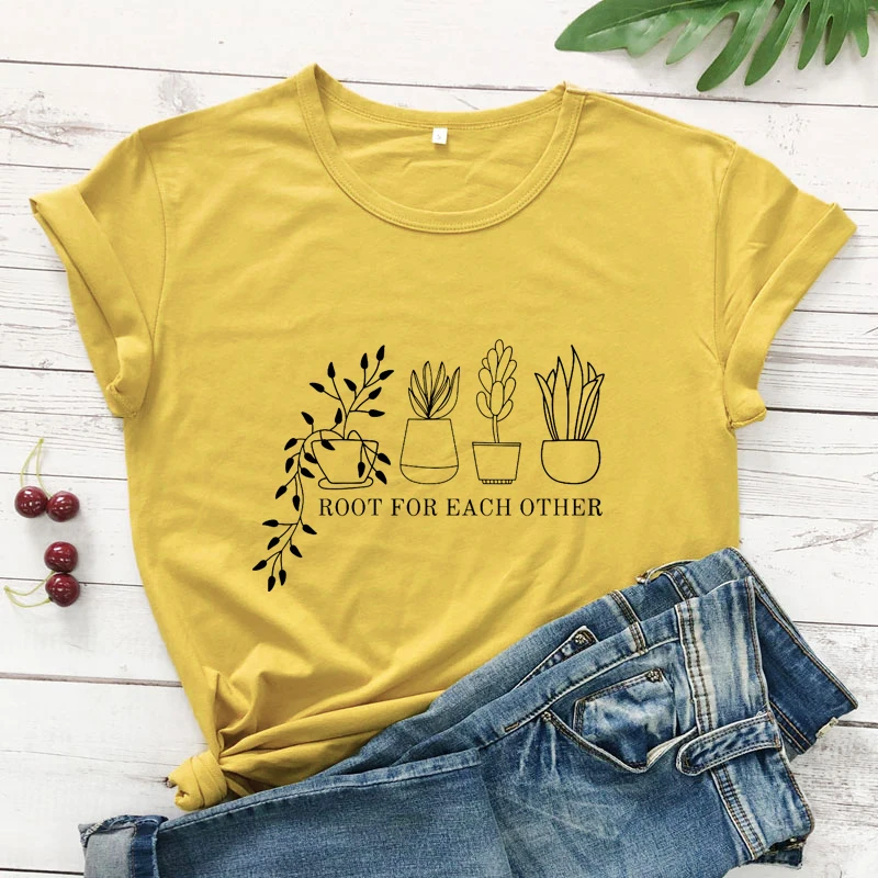 Футболка корень для друг друга, милая Женская футболка для садоводства, веганов, растений, эстетическая Мотивационная цитата, топ, футболка