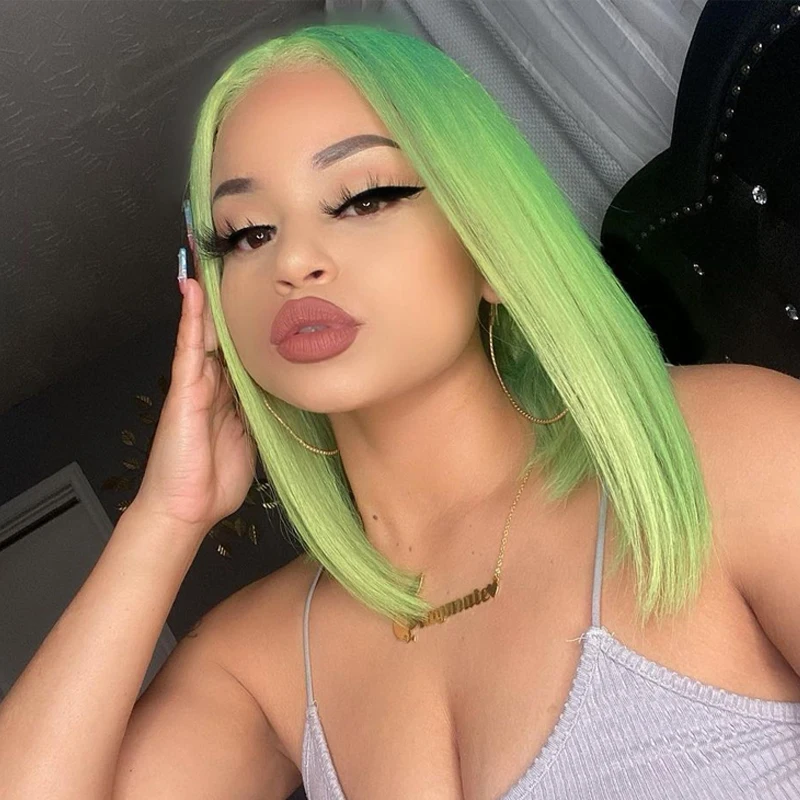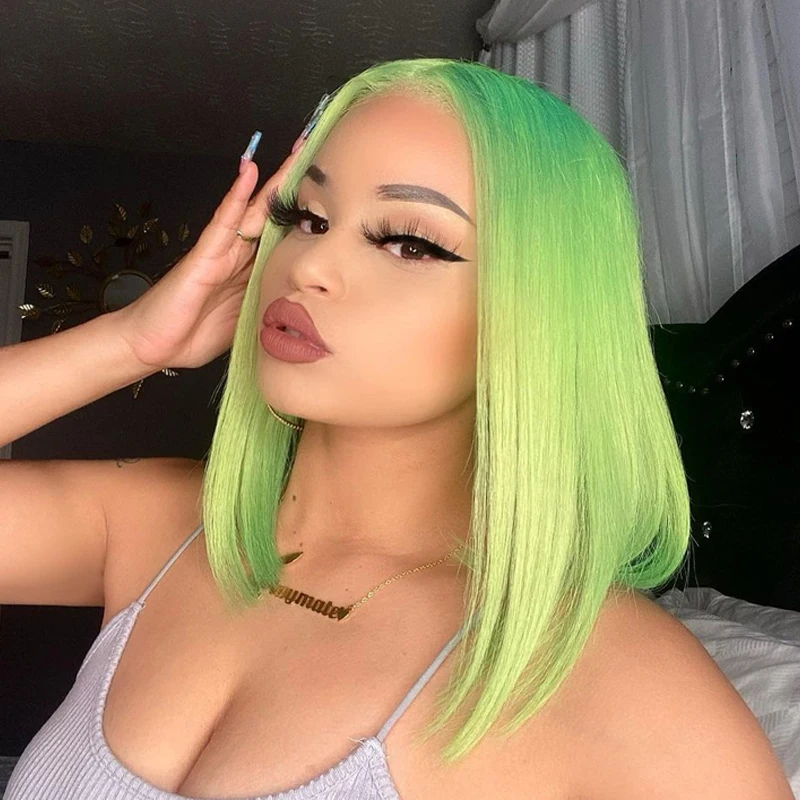 Парик зеленого цвета, парики из человеческих волос, прозрачные прямые короткие парики, парик из T-частей, парик из 180% бразильских человеческих волос Remy