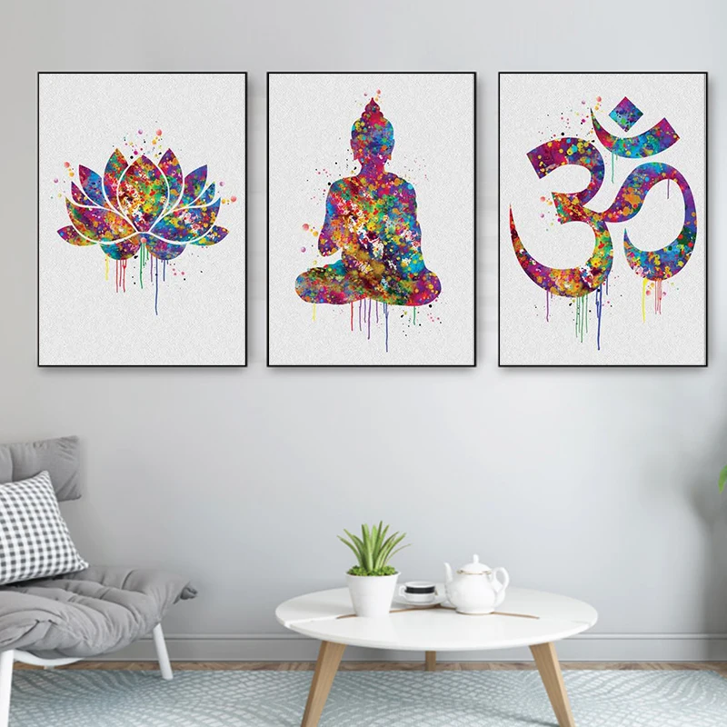 Абстрактная буддистская Картина на холсте Будда Ом цветок лотоса плакаты и принты Настенная картина для гостиной домашний декор
