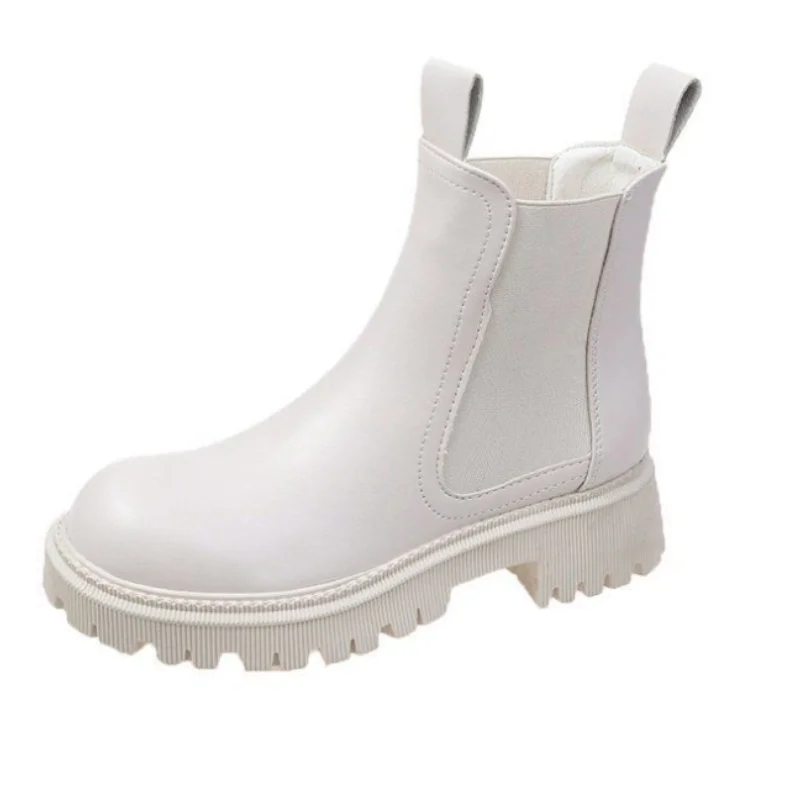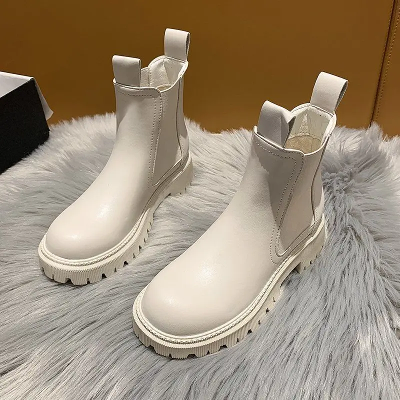 Ботильоны женские эластичные, Повседневные высокие кожаные ботинки челси с круглым носком, на квадратном каблуке, белые