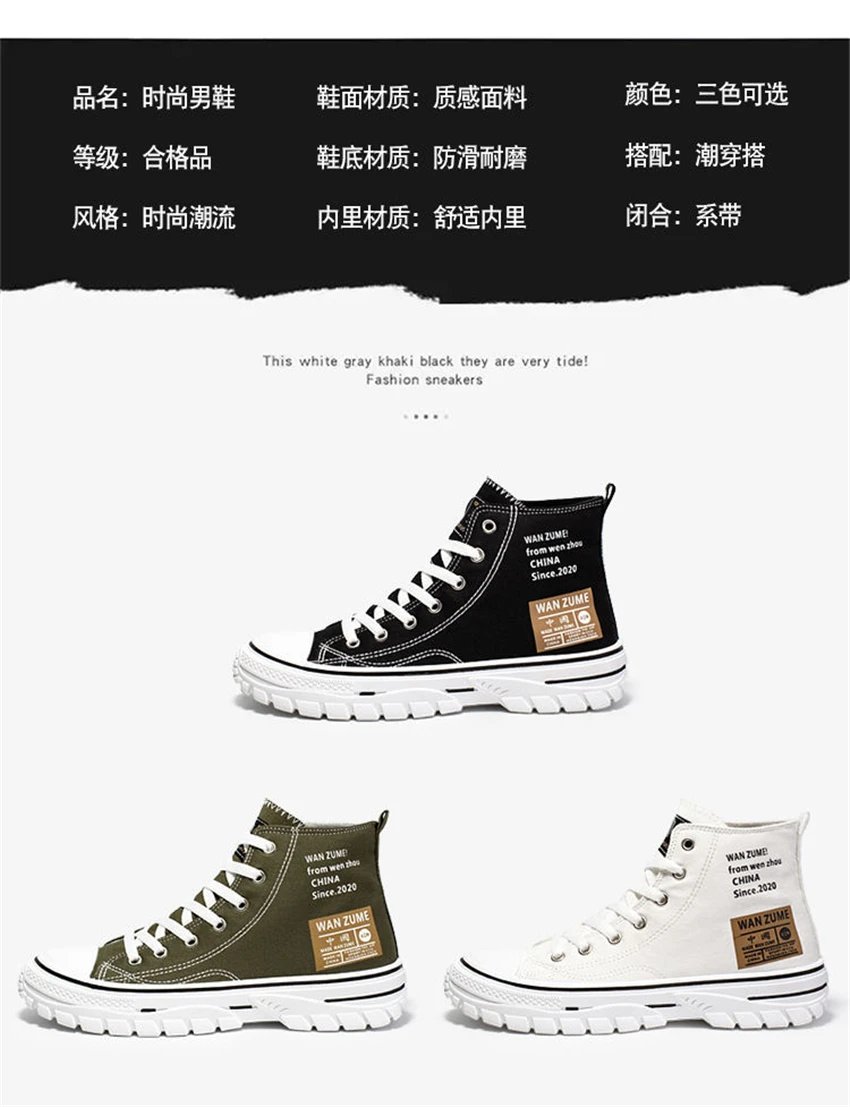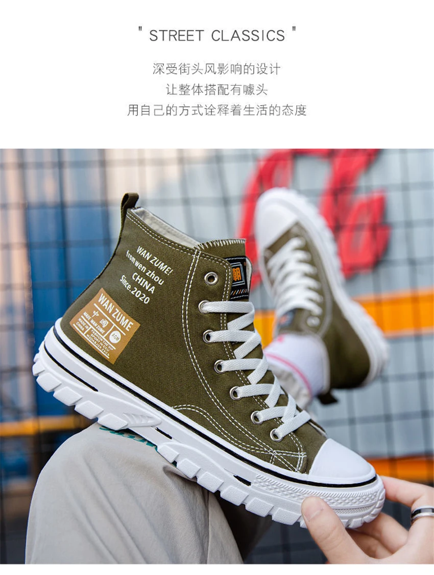Кроссовки мужские с высоким берцем, зеленые легкие дышащие холщовые, Повседневная модная однотонная обувь для скейтборда, весна-осень