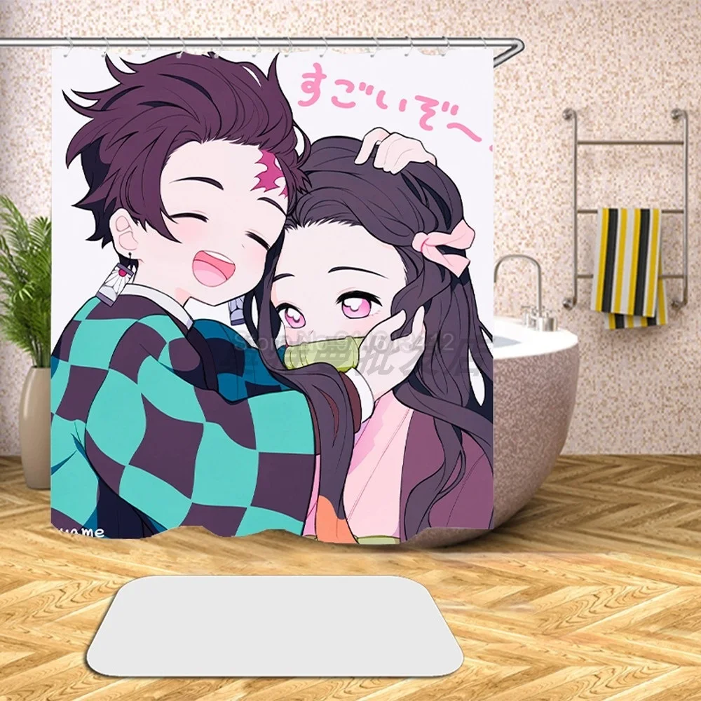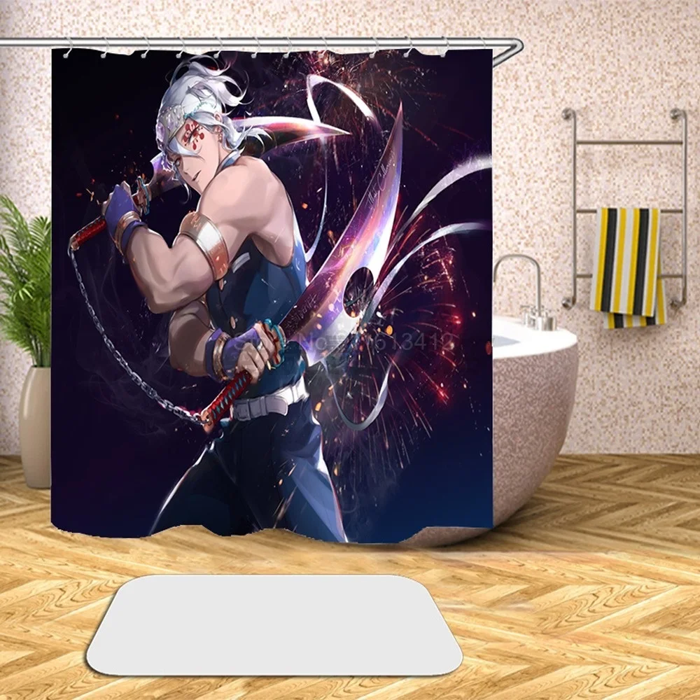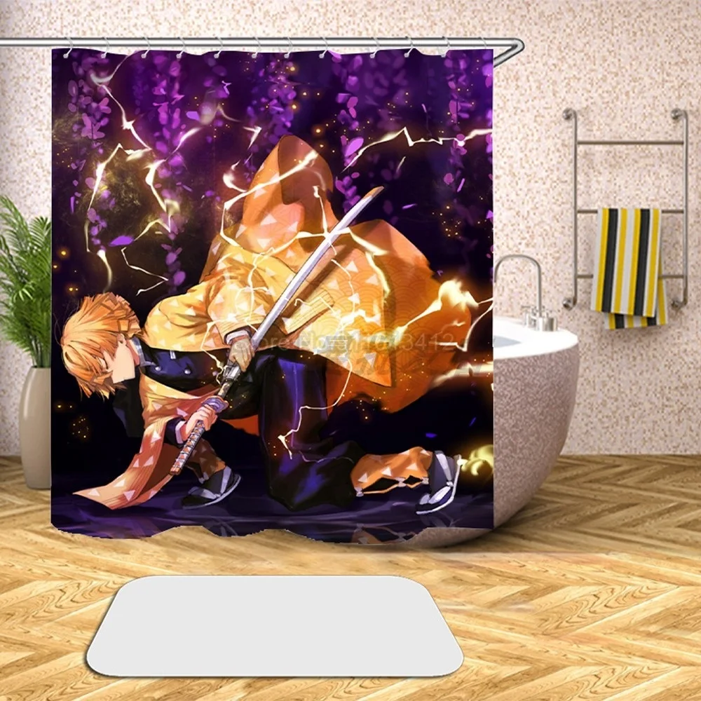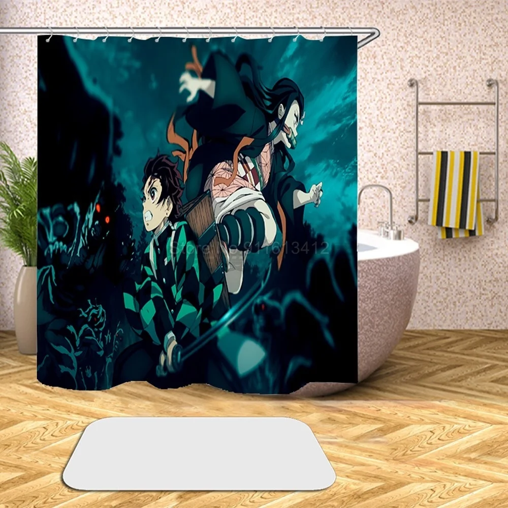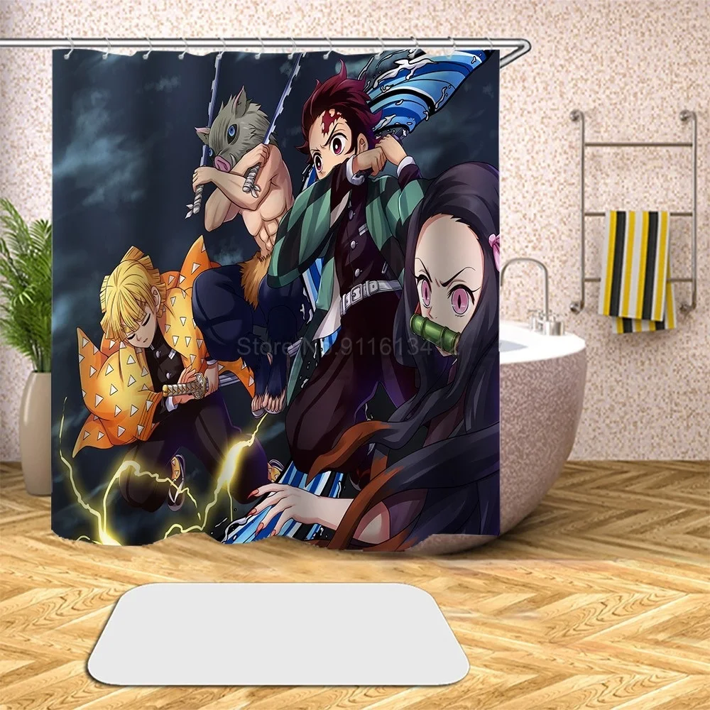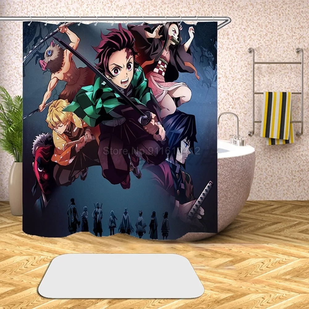 Занавеска для душа с крючками, водостойкая, в стиле аниме Demon Slayer, 150x180 см