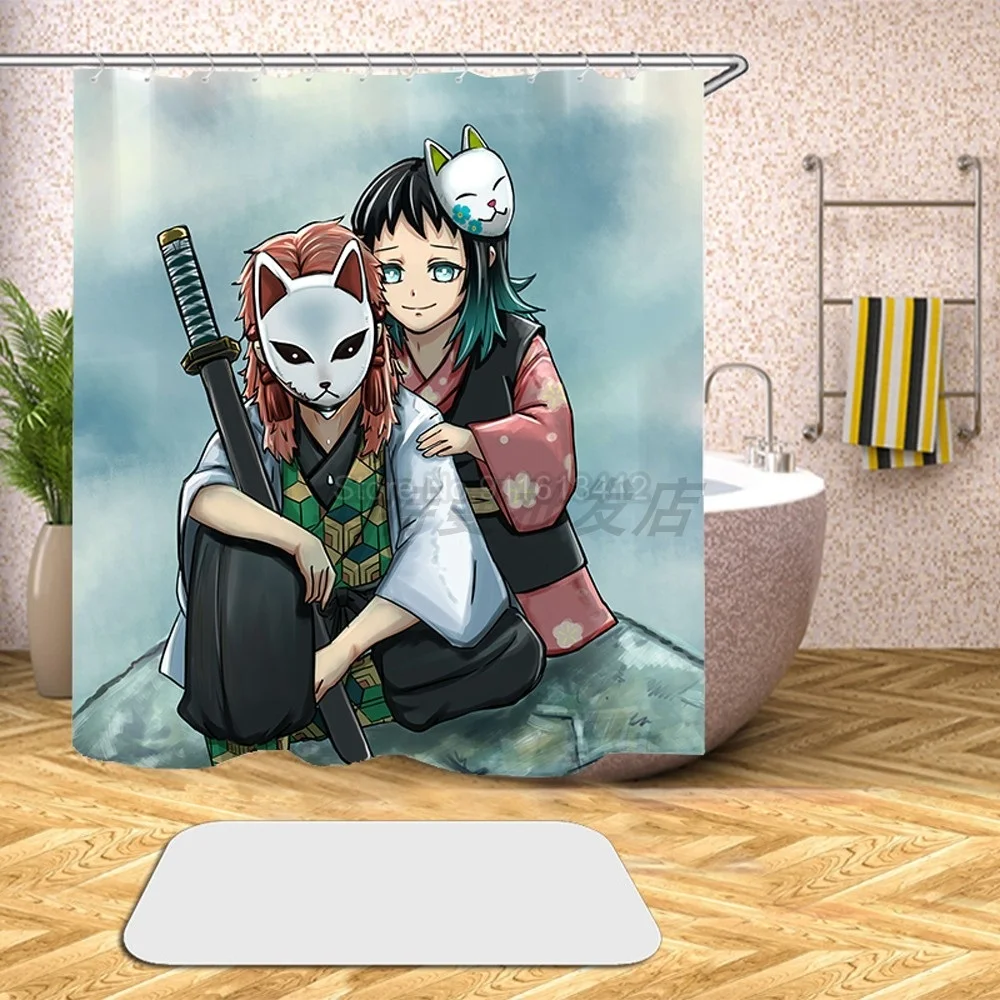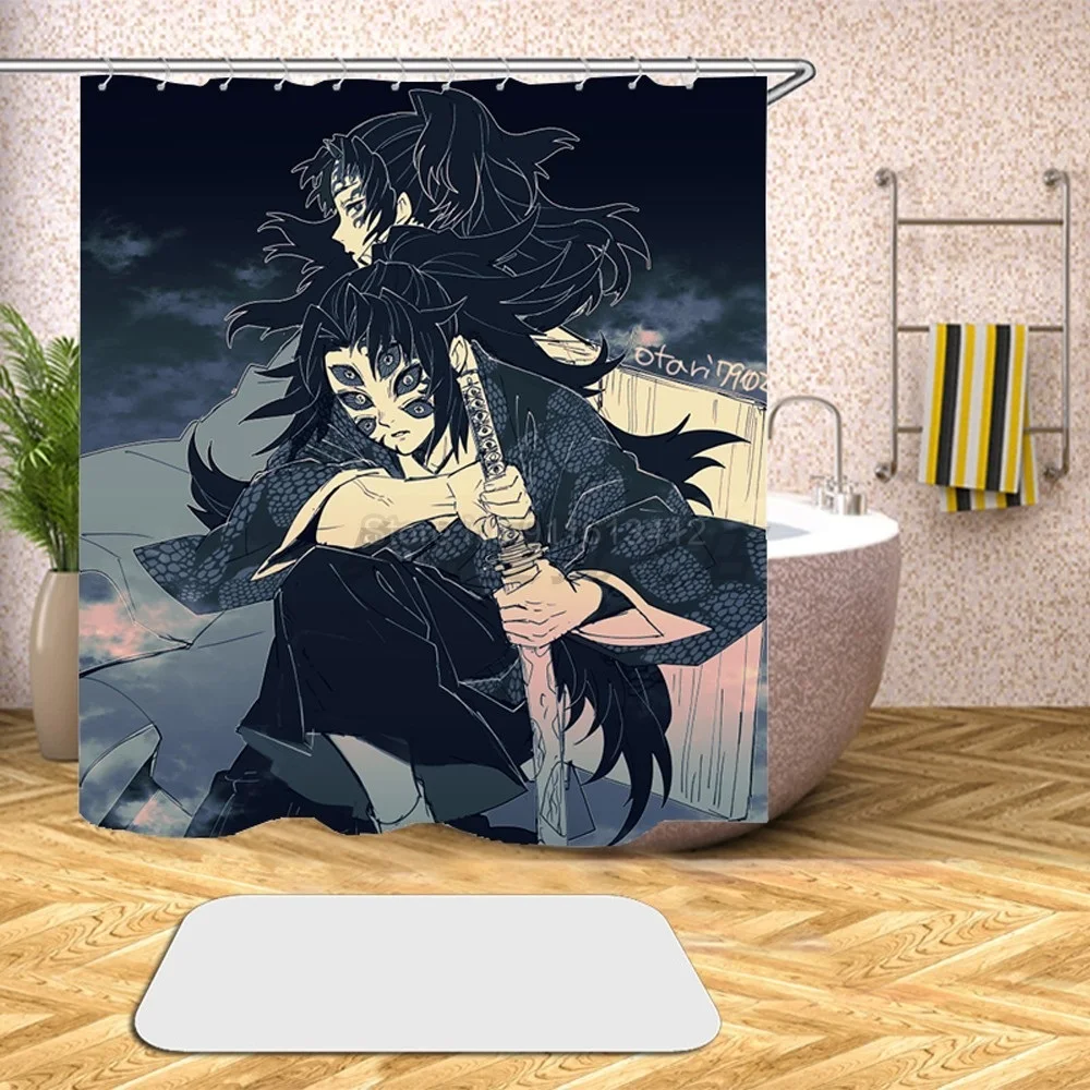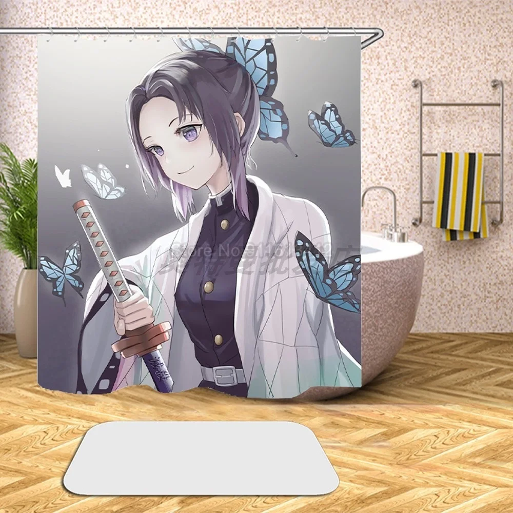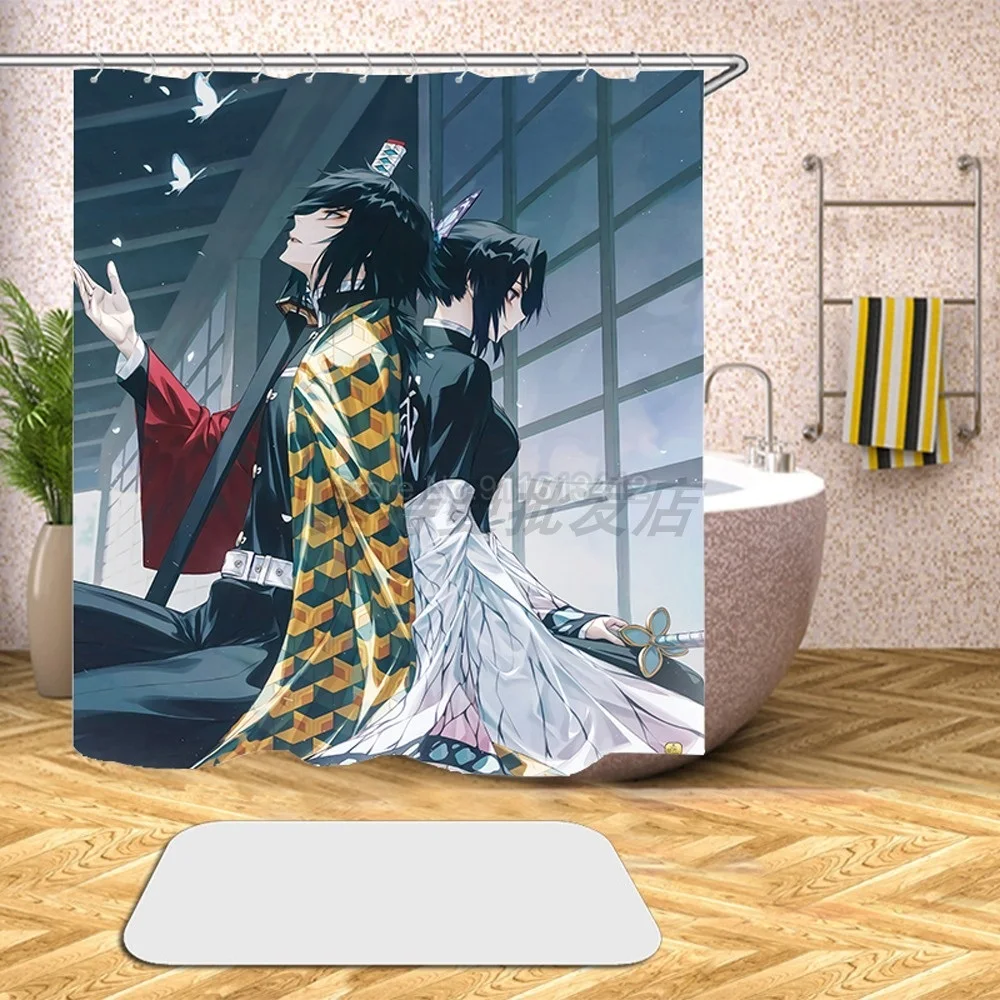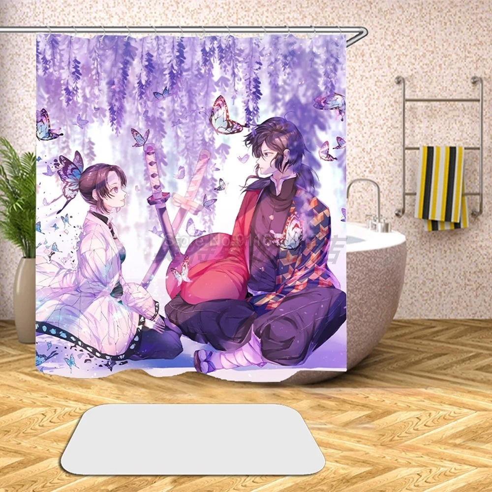 Занавеска для душа с крючками, водостойкая, в стиле аниме Demon Slayer, 150x180 см