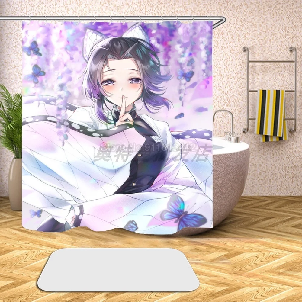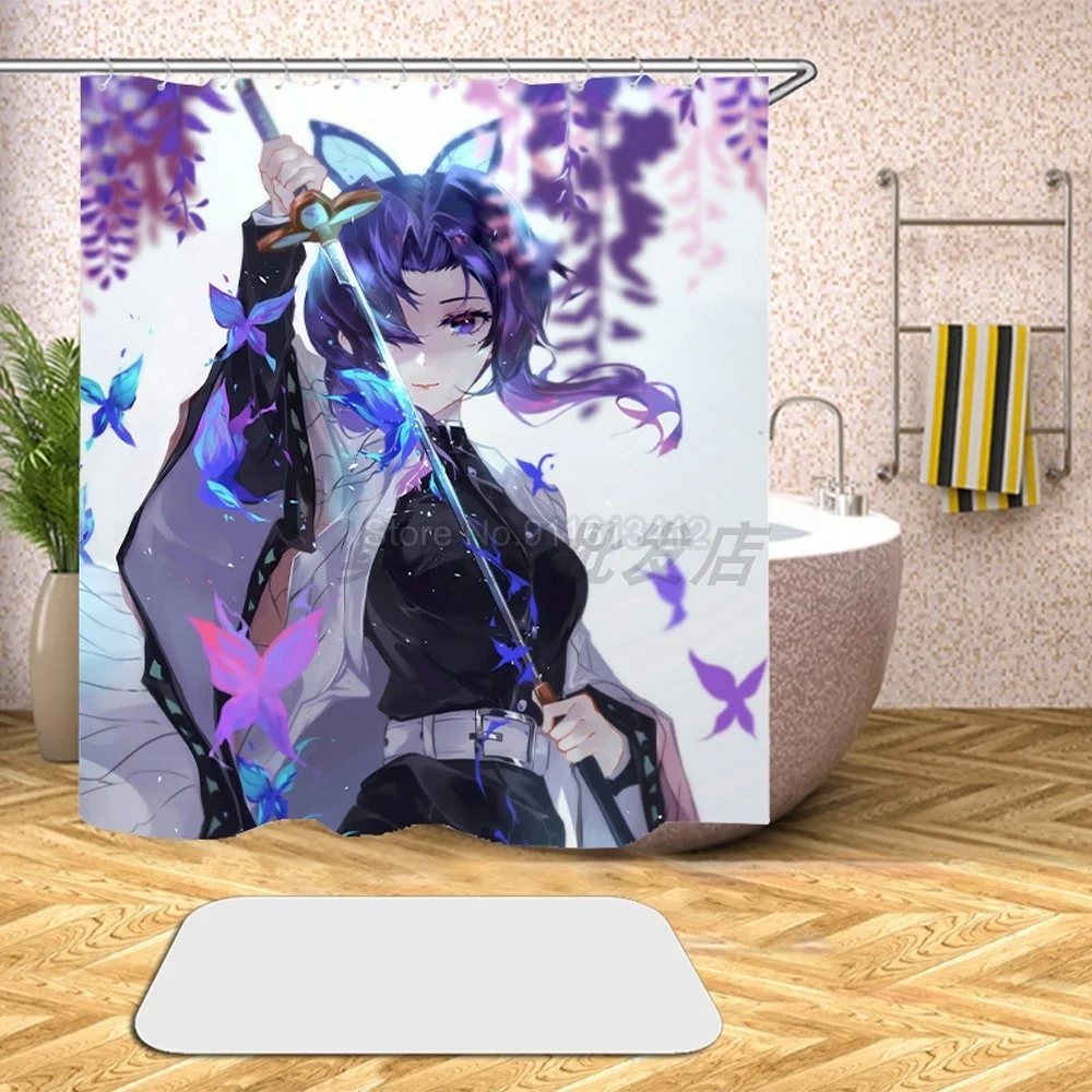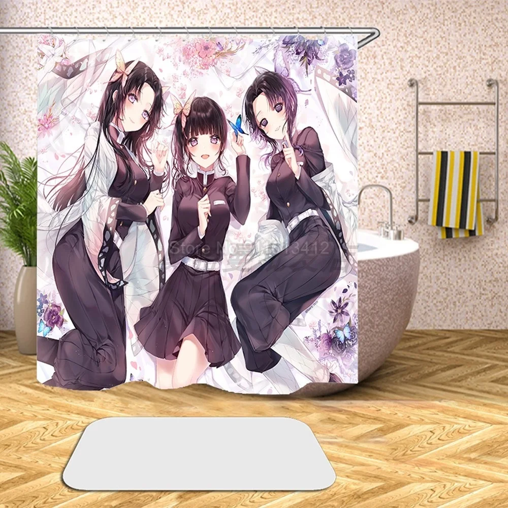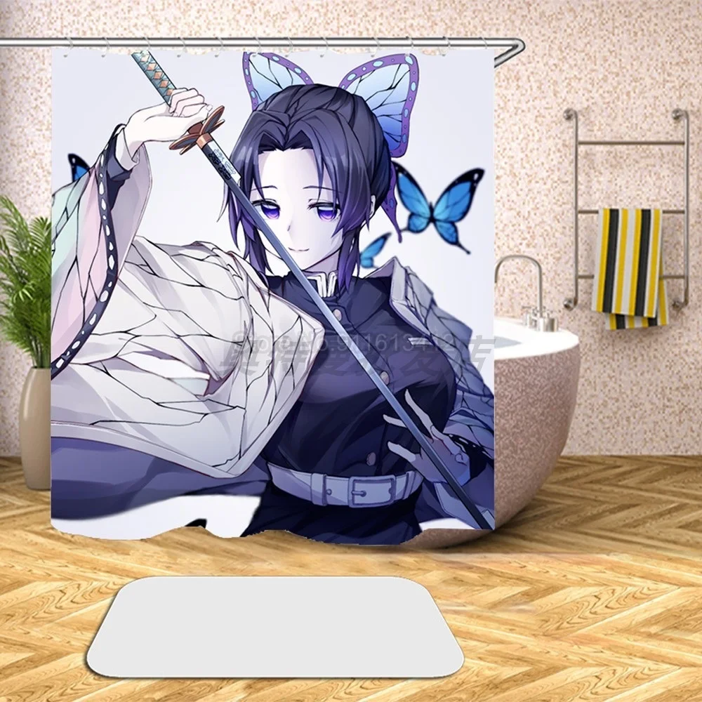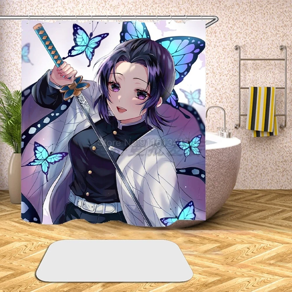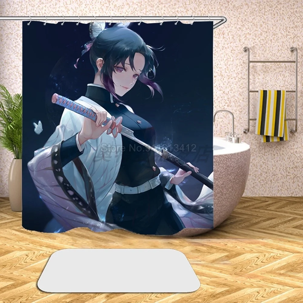 Занавеска для душа с крючками, водостойкая, в стиле аниме Demon Slayer, 150x180 см