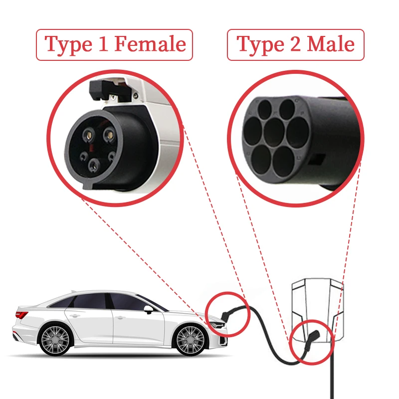 Кабель зарядного устройства для электромобиля Тип 2 в тип 1 7,2 кВт IEC62192-2 to SAE J1772 EVSE адаптер зарядного преобразователя для электромобиля 3216A 1 фаза