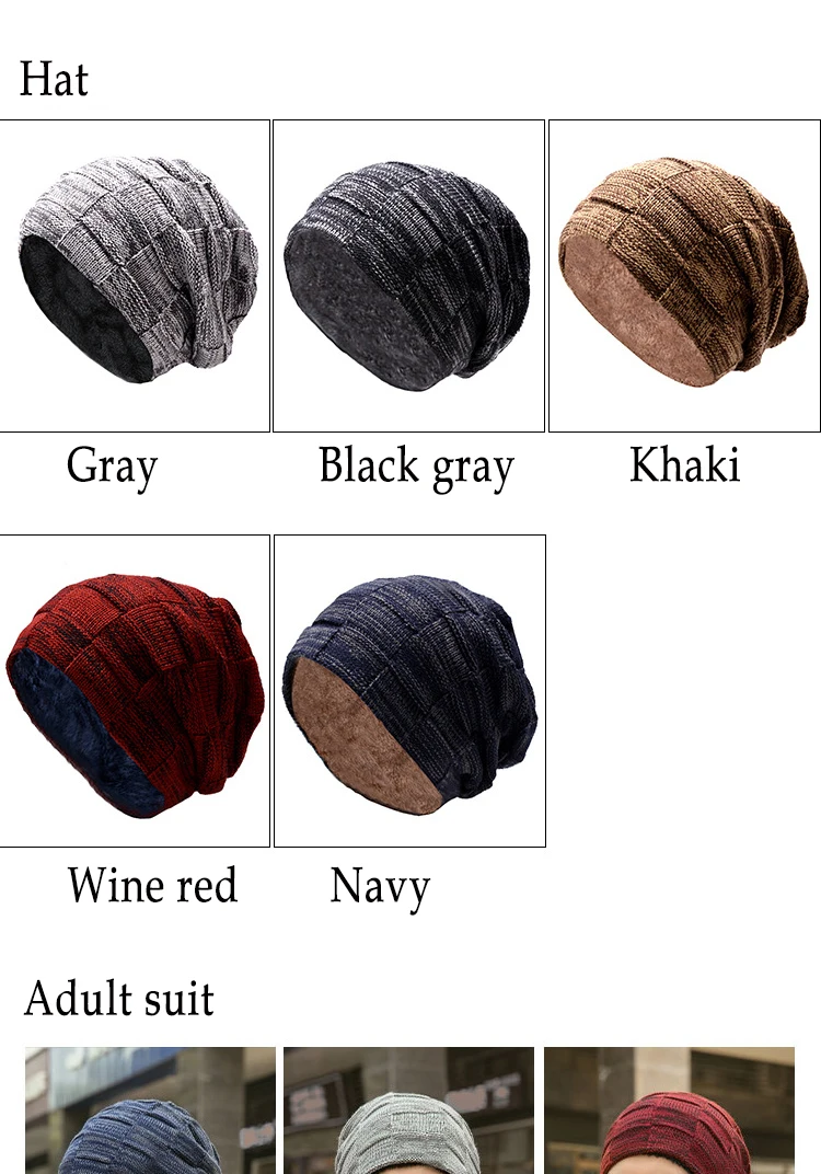 2 шт.компл. Для мужчин зимняя вязаная мягкая плюшевая подкладка шап...
