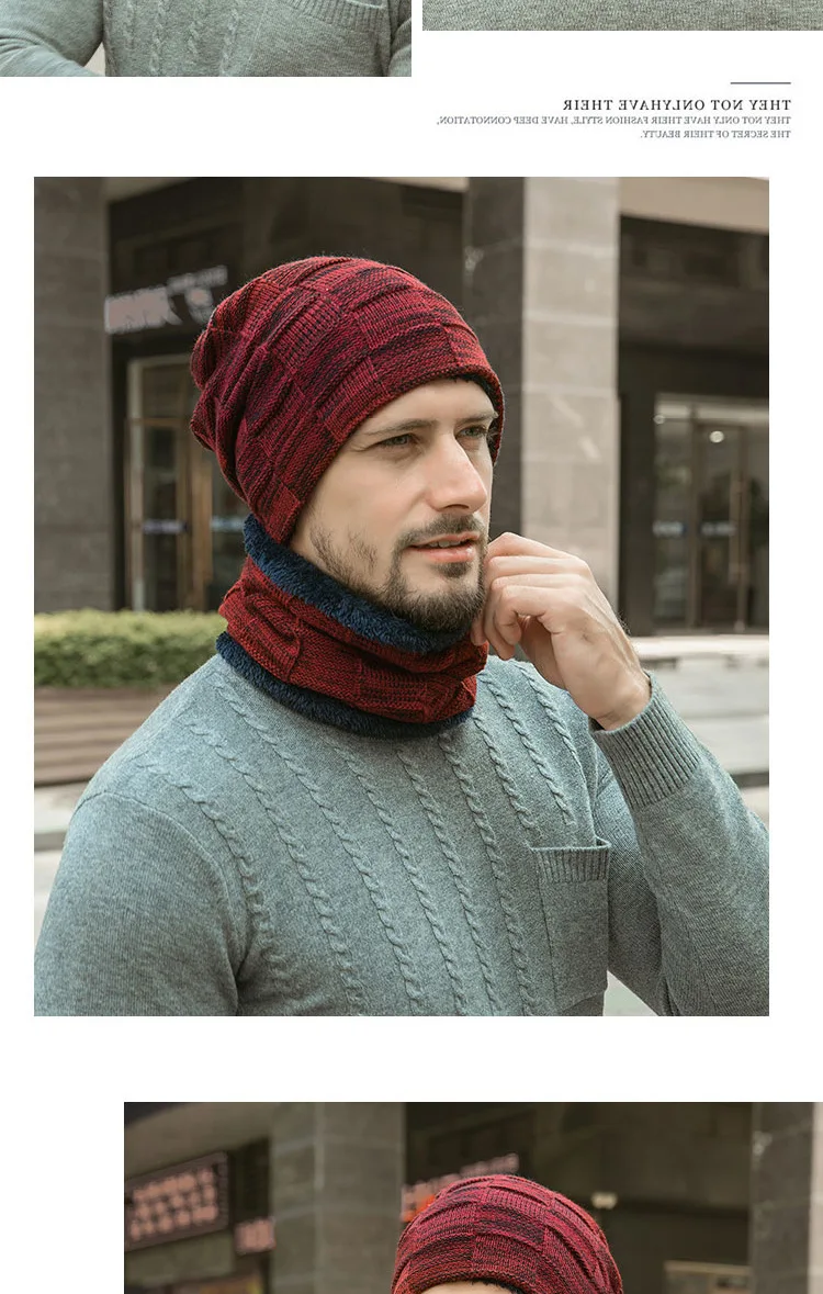 Новая модная зимняя вязаная мужская шапка набор шапки и шарфа шапка...
