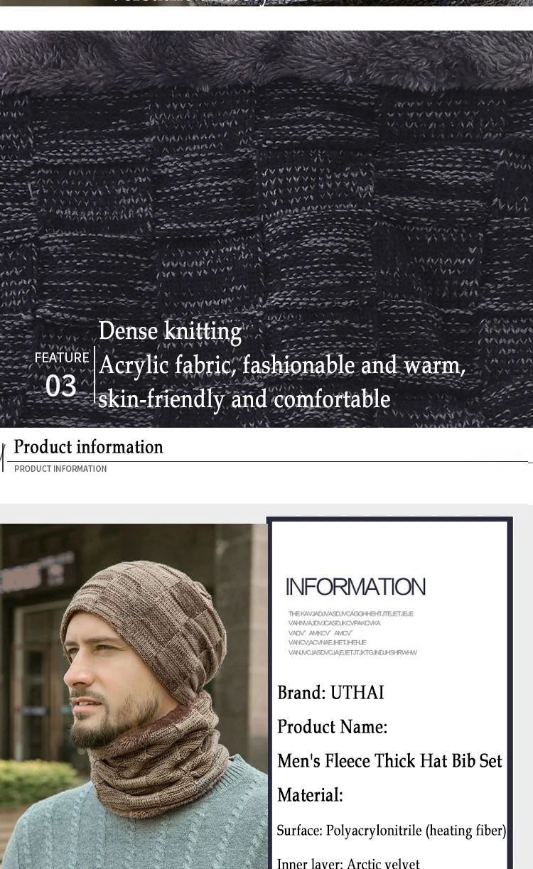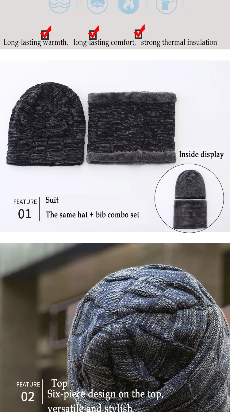 Мужская шапка 2 шт.компл. Мужская Зимняя Вязаная Мягкая Плюшевая об...