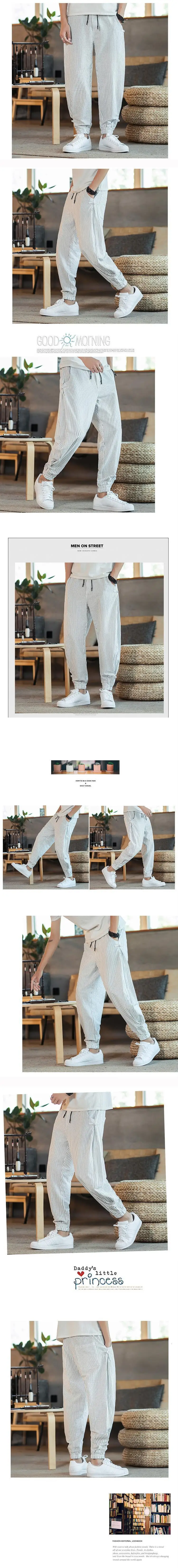Брюки MrGoldenBowl мужские в черно-белую полоску, шаровары, новинка 2020, модные мужские повседневные свободные брюки из хлопка и льна, мужские брюки 5XL