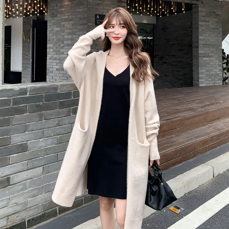 Кардиган женский из норкового кашемира, длинный осенний, теплый