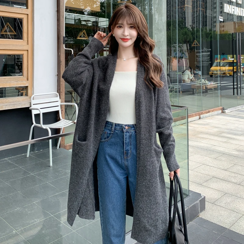 Длинный кардиган SHIJIA в стиле Харадзюку, женский свитер, серый ос...