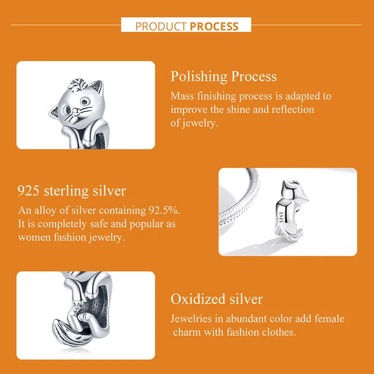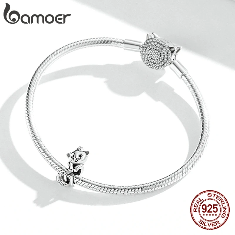 Женский браслет bamoer, браслет из стерлингового серебра 925 пробы с милой лисой, украшенный бусинами и котом, ювелирное изделие SCC1925
