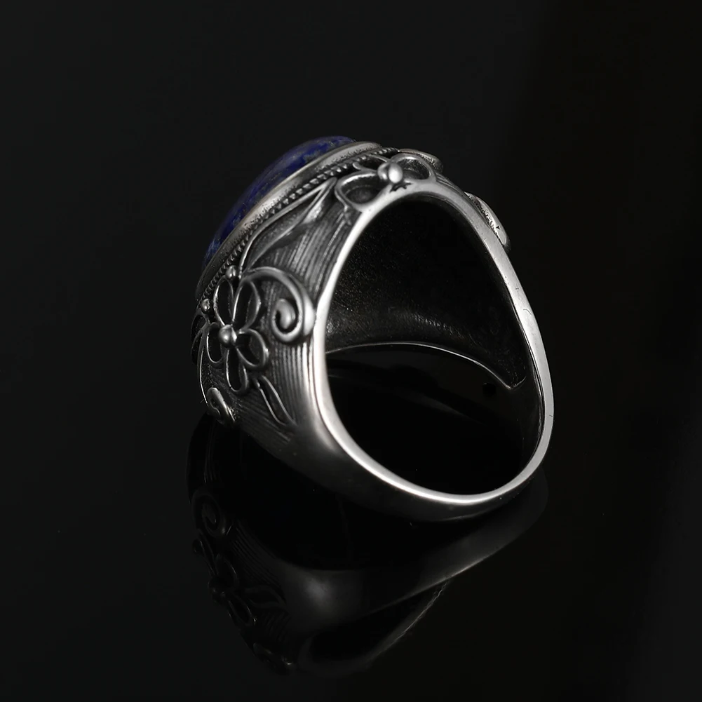 Кольцо из серебра 925 пробы с овальным Лазуритом, 11 х17 мм