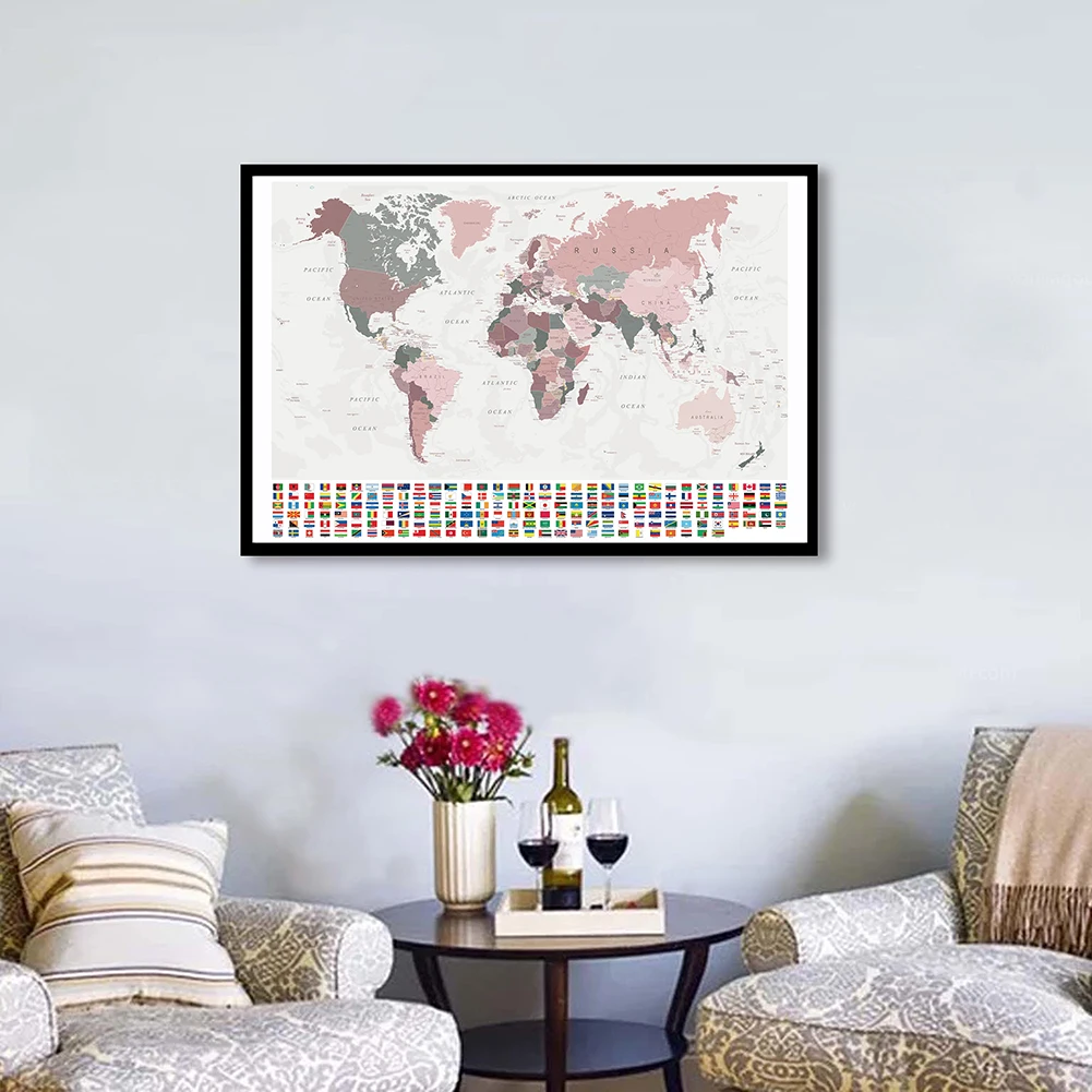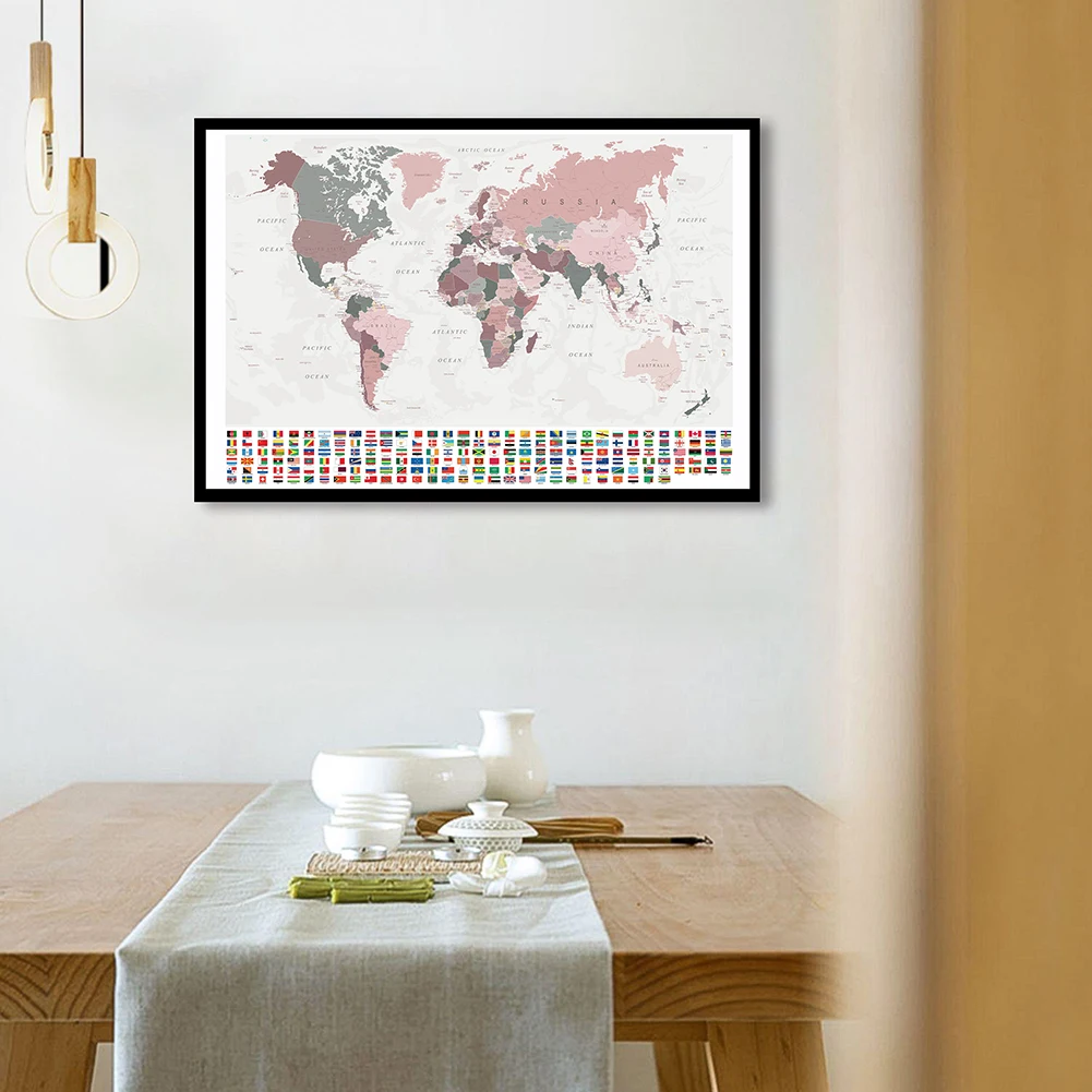 3*2 фута винтажная мировая политическая карта с национальными флагами, виниловая Картина на холсте, настенный художественный плакат, школа