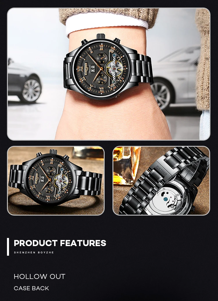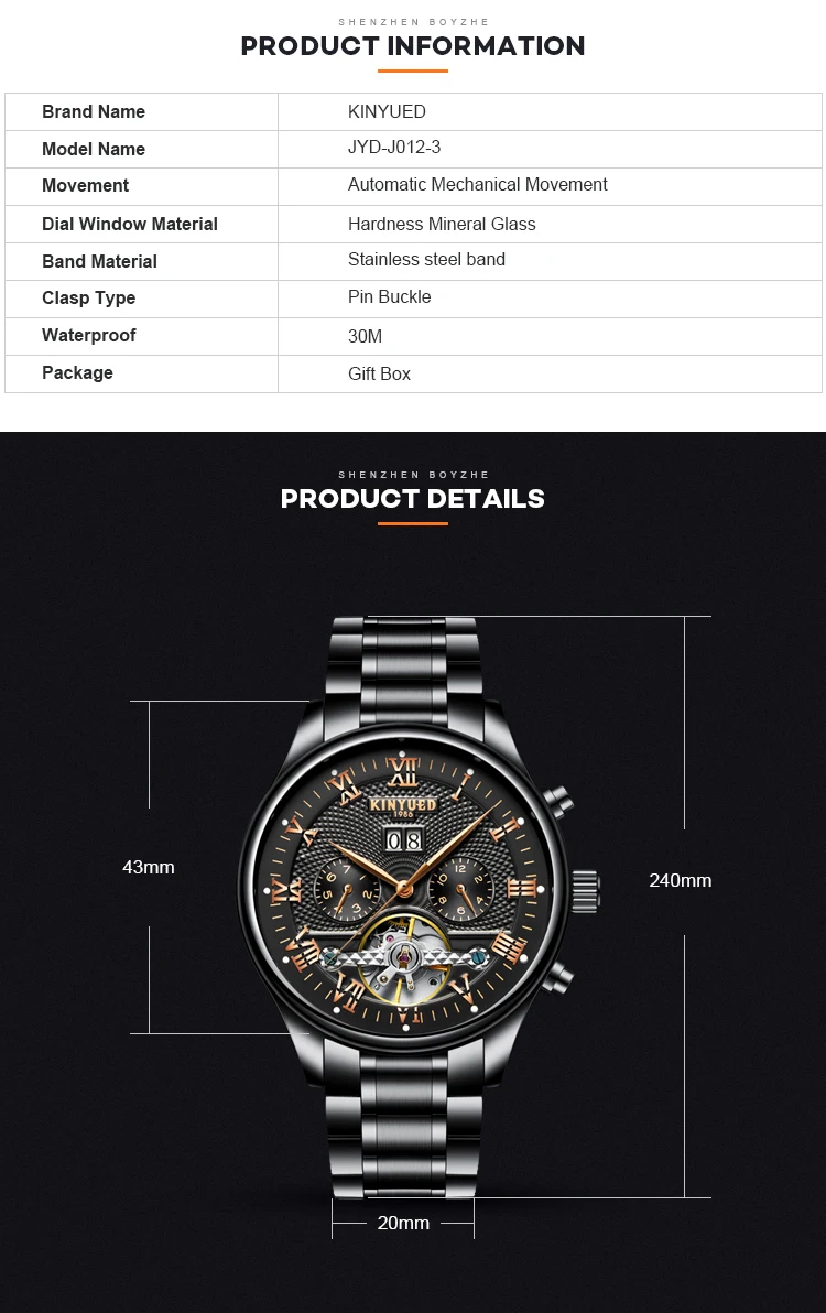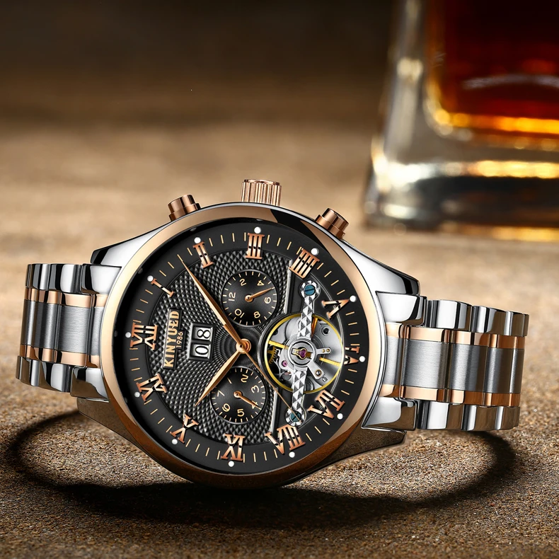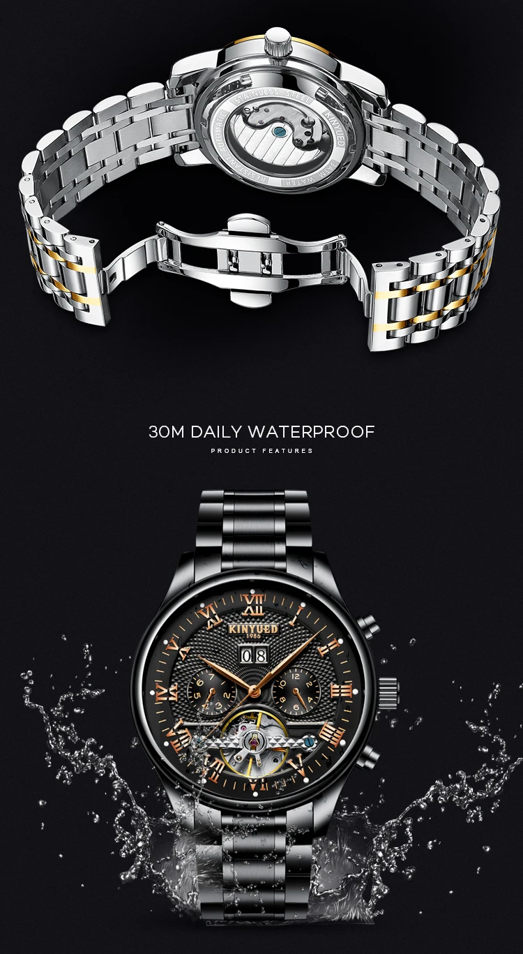 Часы-скелетоны KINYUED Мужские механические, люксовые автоматические водонепроницаемые Классические наручные, с календарем, отображением недели