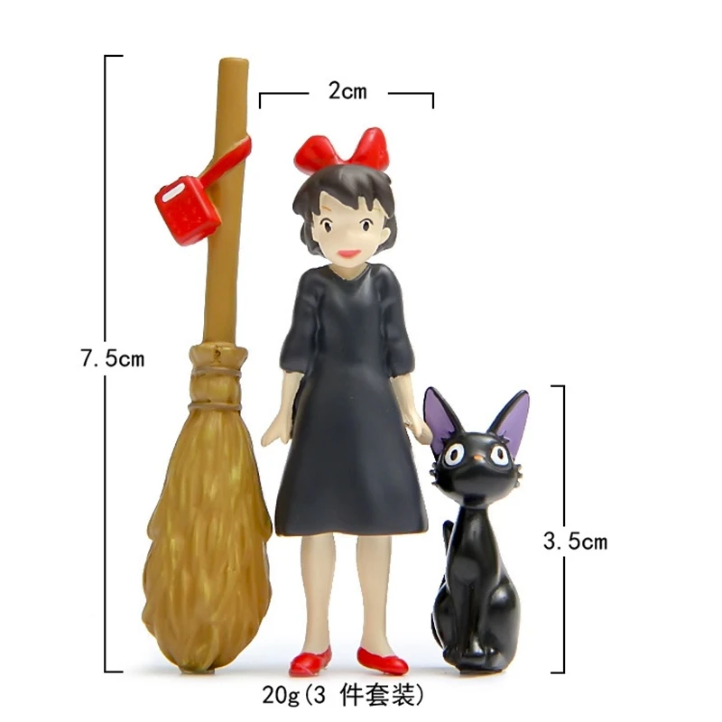 Кавайная Милая японская мультяшная фигурка, служба доставки Кики с метлой, обратная сторона кошки, Jiji мини-фигурка 4-7 см