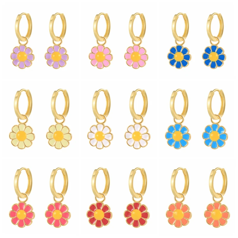 Женские Серьги-кольца с эмалью и маргаритками, розовые и белые Серьги для пирсинга