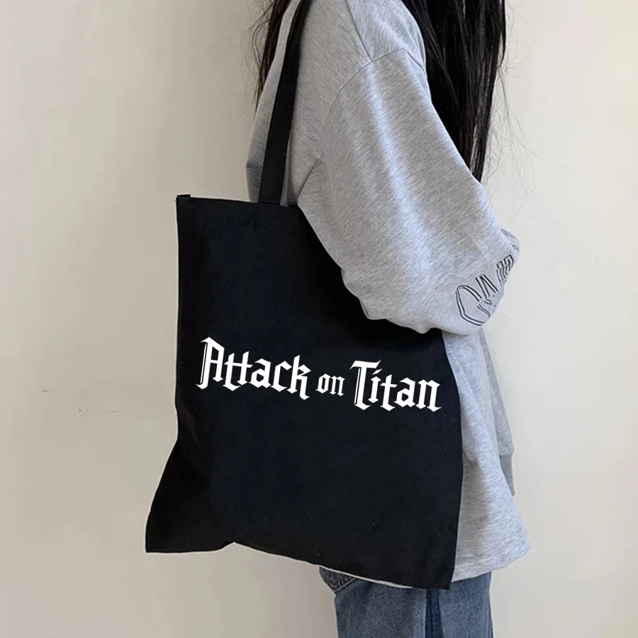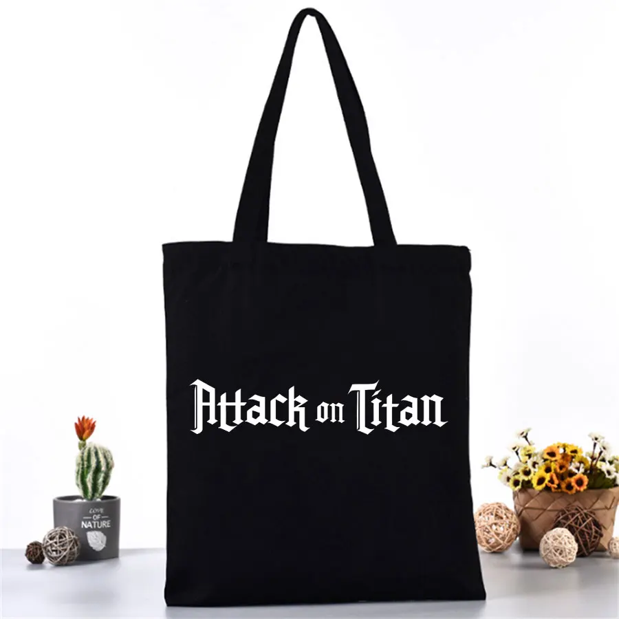 Черная сумка для покупок из хлопка с аниме атака на Титанов, женские сумки через плечо, новинка 2021, многофункциональная сумка-тоут, Корейская холщовая сумка-шоппер