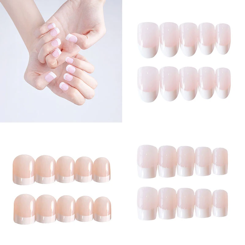Накладные ногти с клеем, 24 шт.лот, съемные, французский дизайн ногтей, полное покрытие, накладные ногти, инструмент для самостоятельного маникюра, накладные ногти 2021