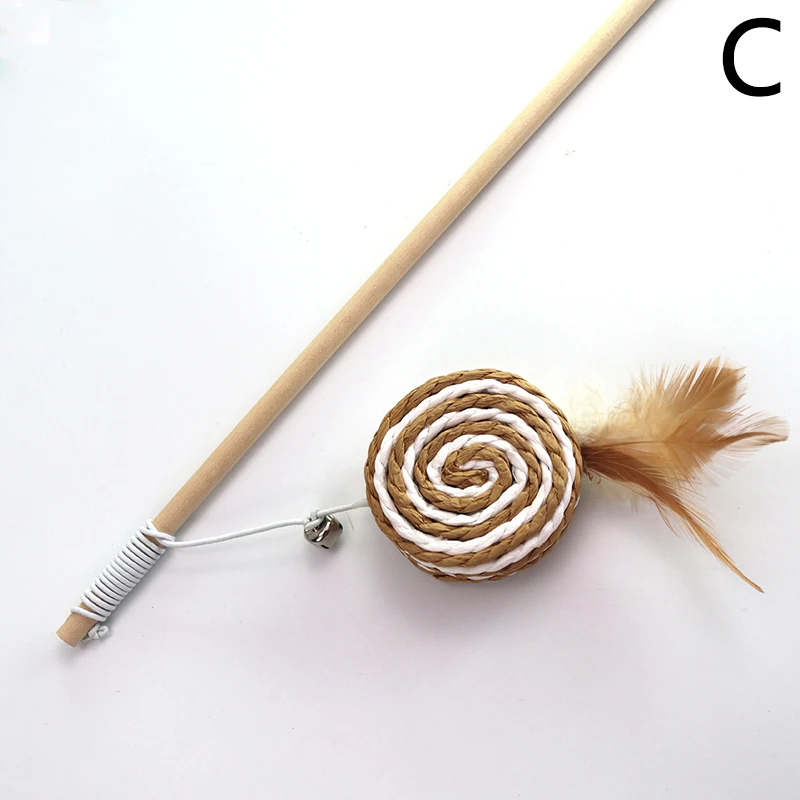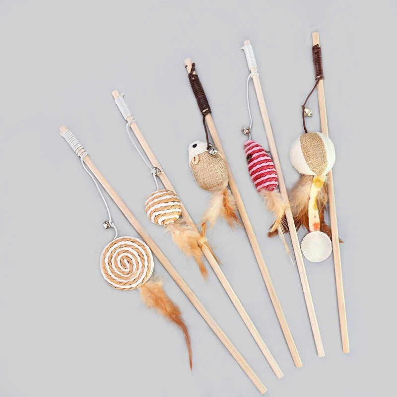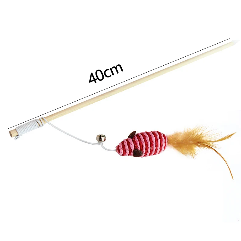 Забавная деревянная рыболовная удочка для кошек, мышь, настольная деревянная удочка, перо, игрушка для домашних животных, трость для кошек