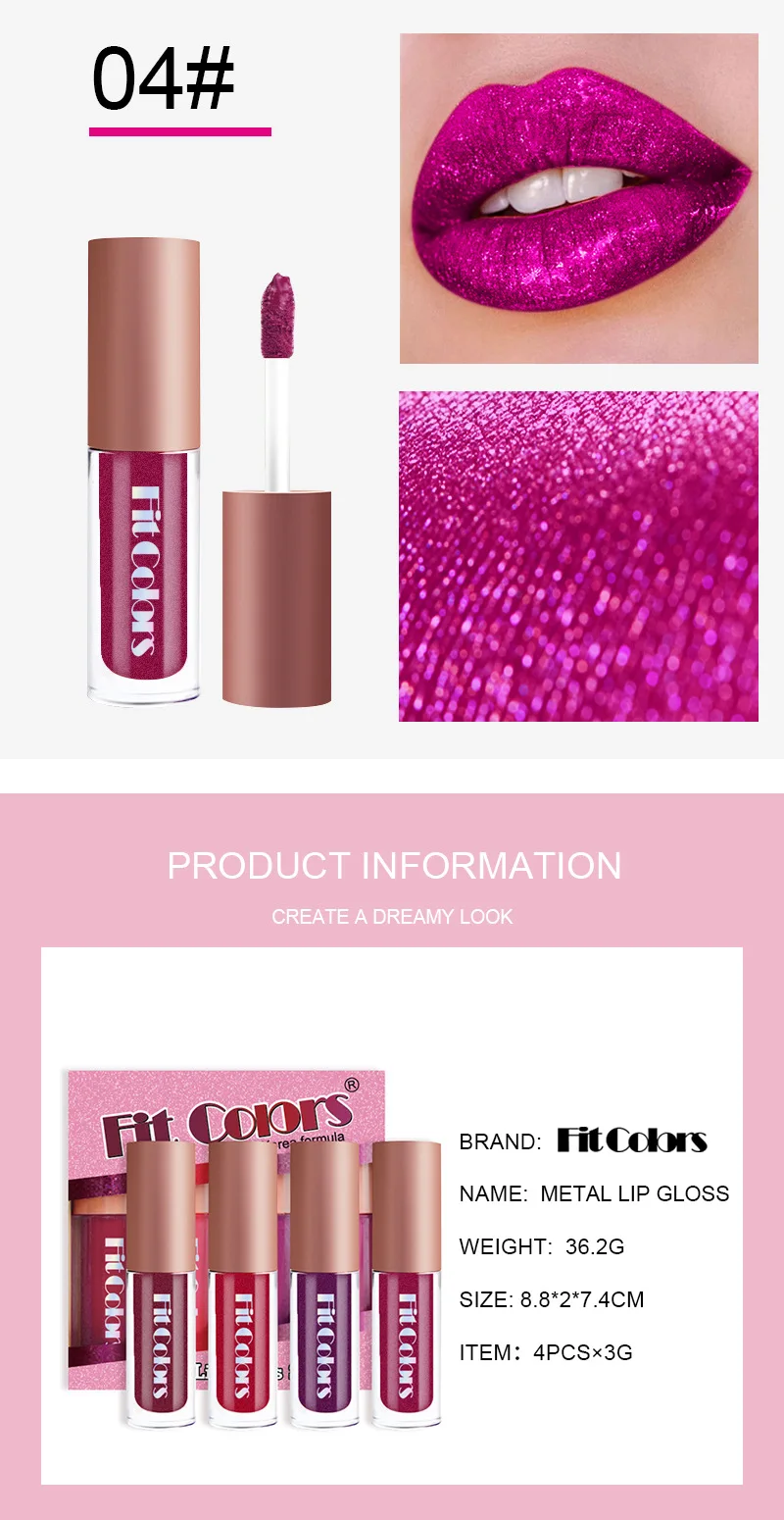 4 шт.компл. металлический блеск Губная помада водостойкий мерцающий...
