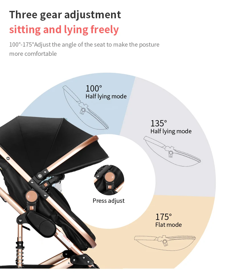 Многофункциональная детская коляска 3 в 1, высокий ландшафт, может сидеть, наклонное освещение, двусторонняя связь с автомобильным сидением